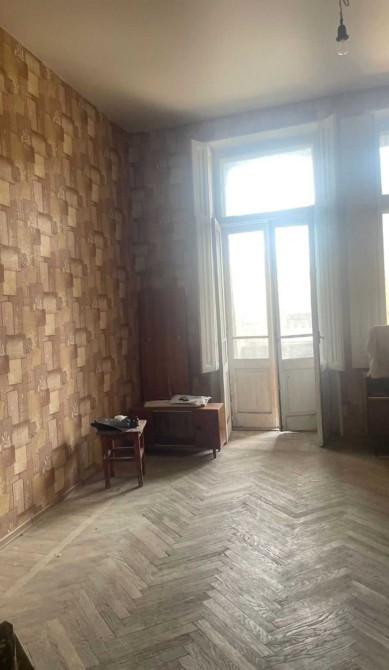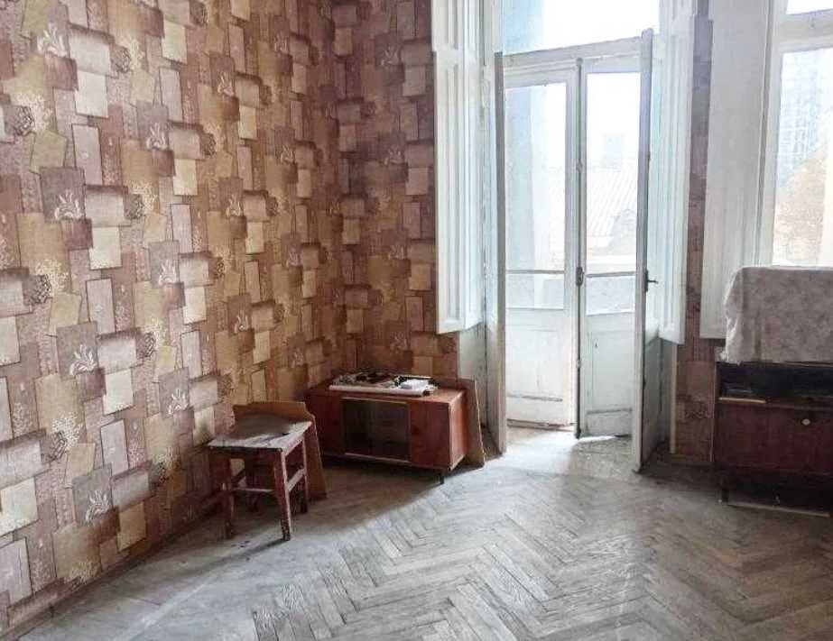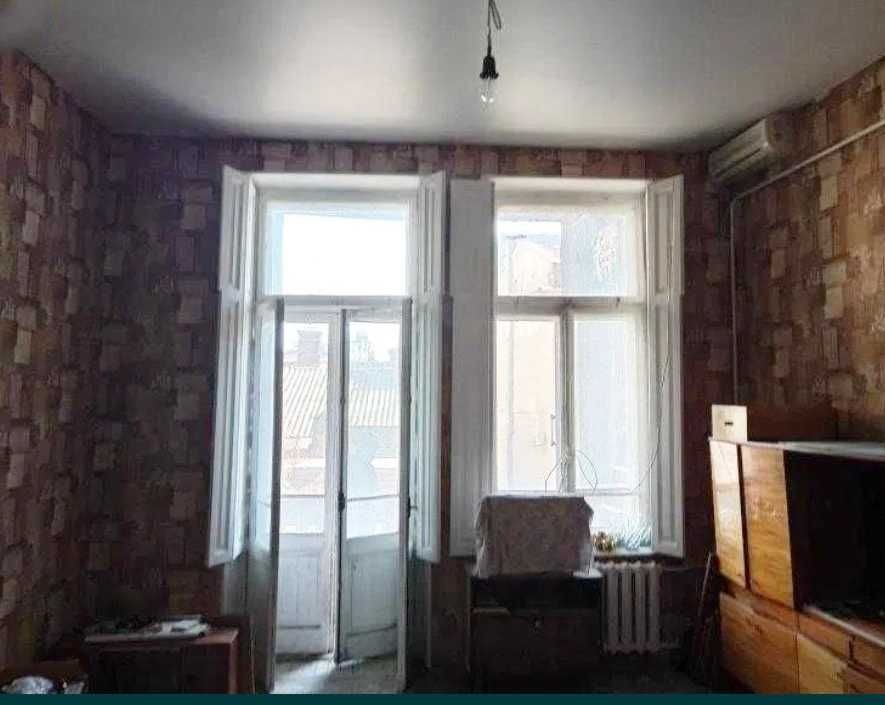 У продажу простора кімната майже 28 кв.м. з високими стелями та власним великим балконом.
