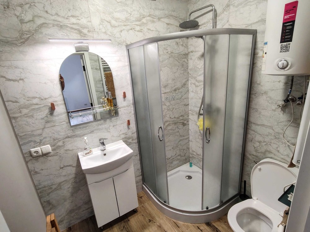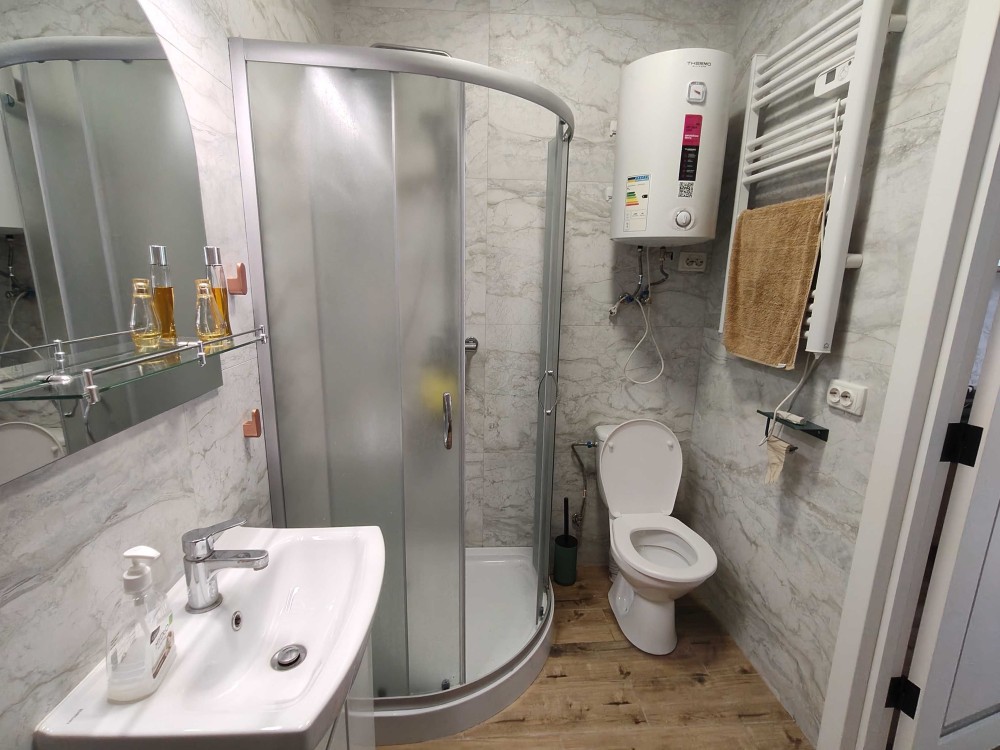 + Опалення – сучасні економічні та потужні електрообігрівачі, що поєднують в собі конвекційну та інфрачервону складову + система теплих підлог в кухні-вітальні та санвузлі.