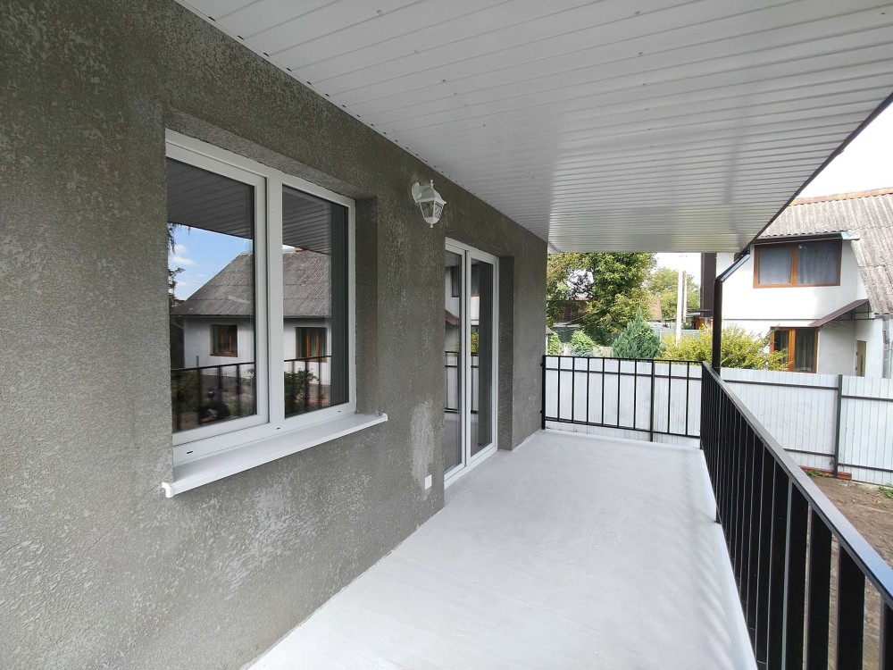 + Новітні технології будівництва, якісні матеріали, гідроізоляція цоколя, утеплення фасаду 150 мм + утеплення даху, є обмостка навколо будинку та впорядкована стежка від воріт.