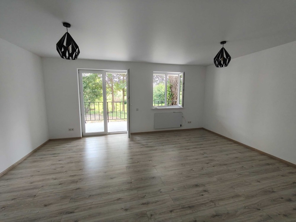 + Зручне планування! Величезна кухня-вітальня 19 м кв, санвузол, дуже простора кімната понад 26 м кв, яку можна, за потреби, чудово поділити на дві неведличких окремих (вікна дозволяють!) і отримати прекрасне помешкання з двома спальнями, а також родзинка цього будинку – простора тераса, захована від сторонніх очей, де так комфортно релаксувати після напруженого дня!
