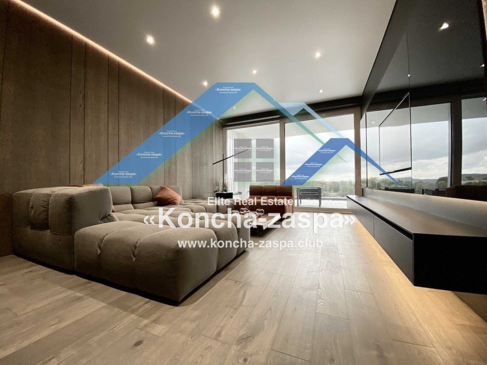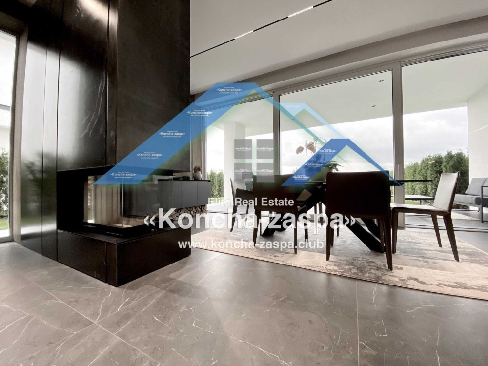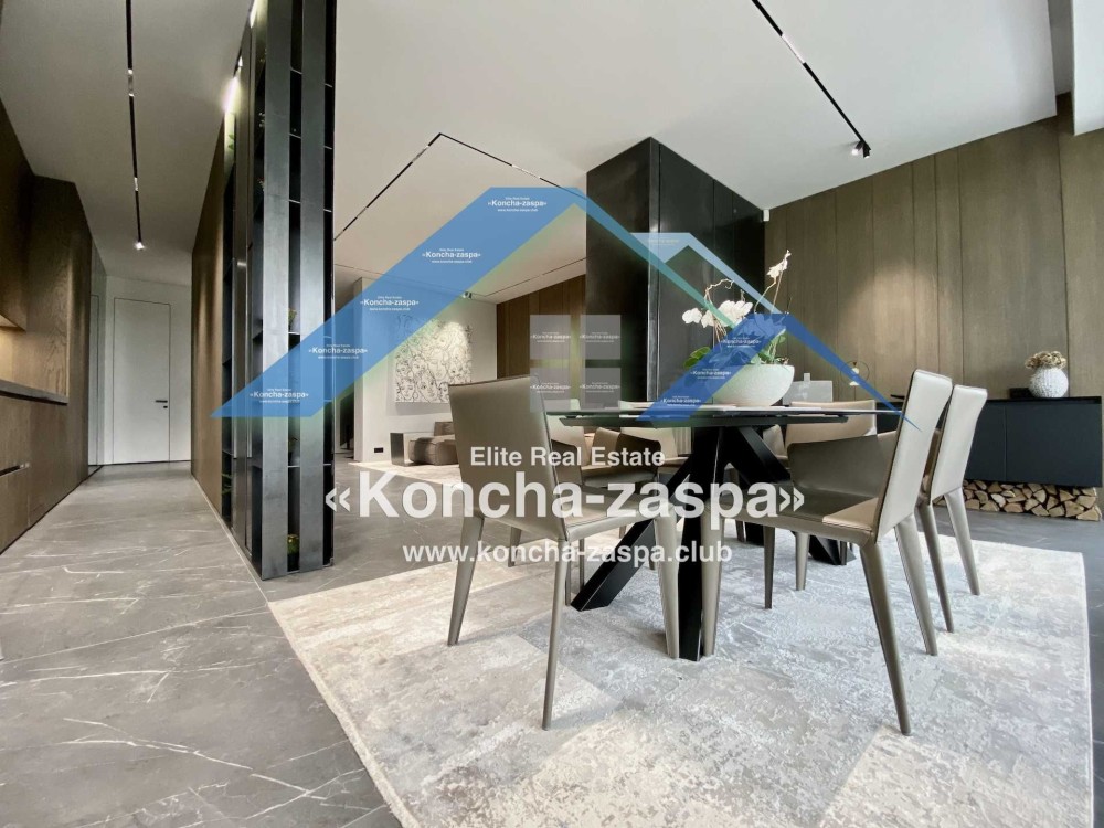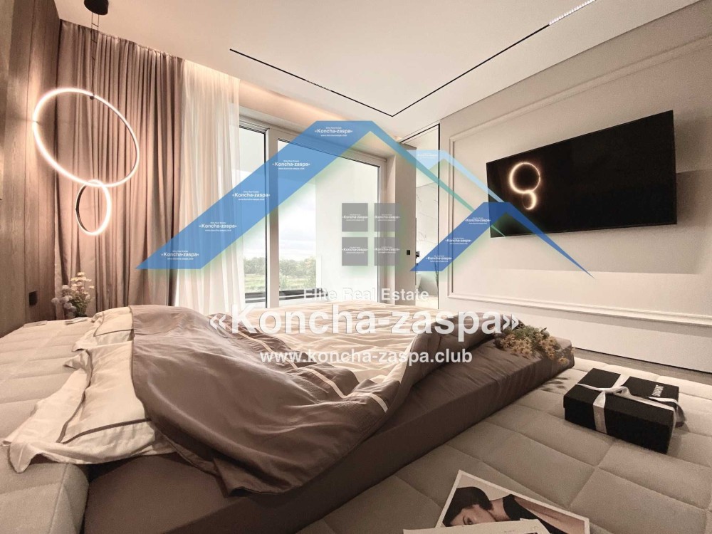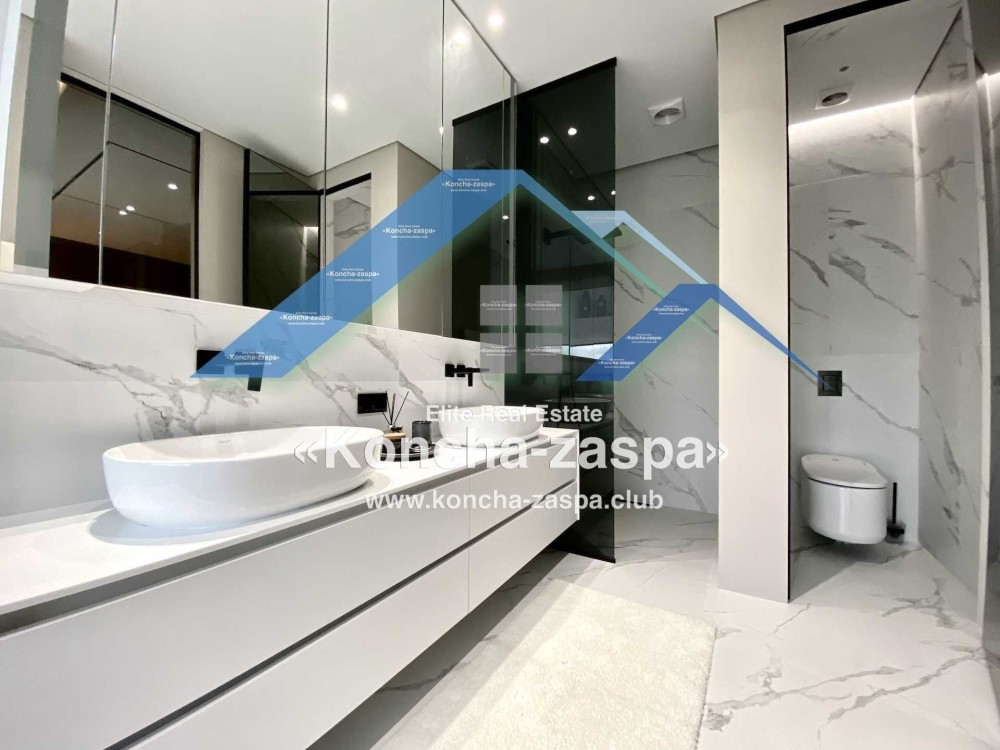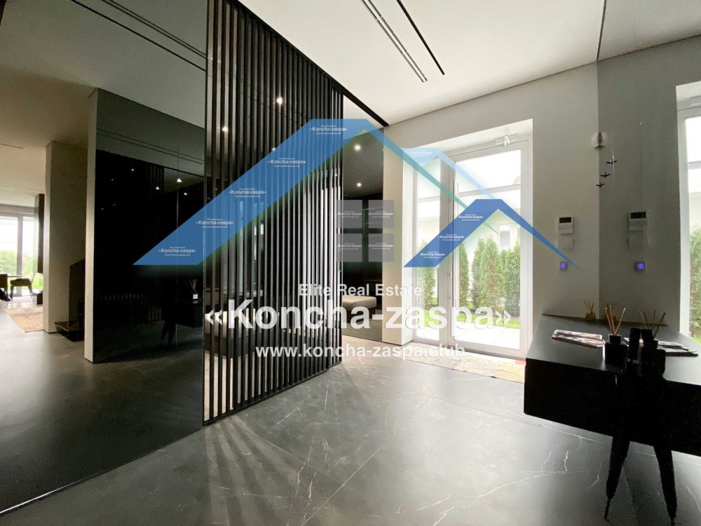Дома дуплексы 300м2 с ремонтом и мебелью премиум-класса, выполнены из высококачественных материалов в ультрасовременном дизайне из натуральных материалов. 1-й этаж — прихожая, большая гардеробная, просторная гостиная с двухсторонним камином, столовая зона с панорамным окном и выходом на террасу, кухня, гостевой с/у; 2-й этаж - две спальни, два с/у, хозяйская спальня со своим с/у и двумя гардеробными; 3-й этаж - лаунж-зона, комната отдыха, выход на террасу с джакузи, сауна, с/у, бытовая комната укомплектованная стеллажами, стиральной и сушильной машиной Samsung. Полы с подогревом, котел Wiesmann; система Умный дом; Алюминиевые витражные окна; система двойной водоочистки; сантехника Hansgrohe, Grohe, Geberit, Devit; кухня Rait с фасадами из натурального дубового шпона, столешница - мрамор, техника Miele, Liebherr; мягкая мебель Bonaldo, двери Elio. Настенные панели - натуральный дубовый шпон. Участок 5 соток, высажен травой и туями, оборудован автополивом.