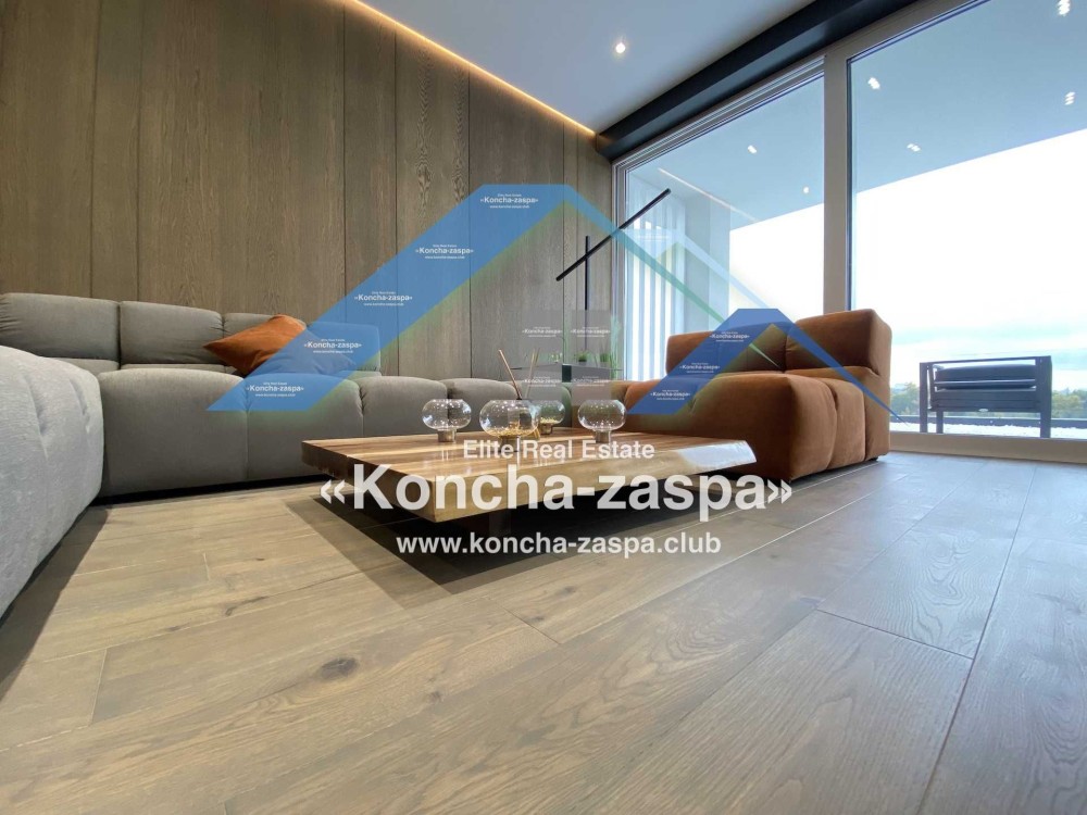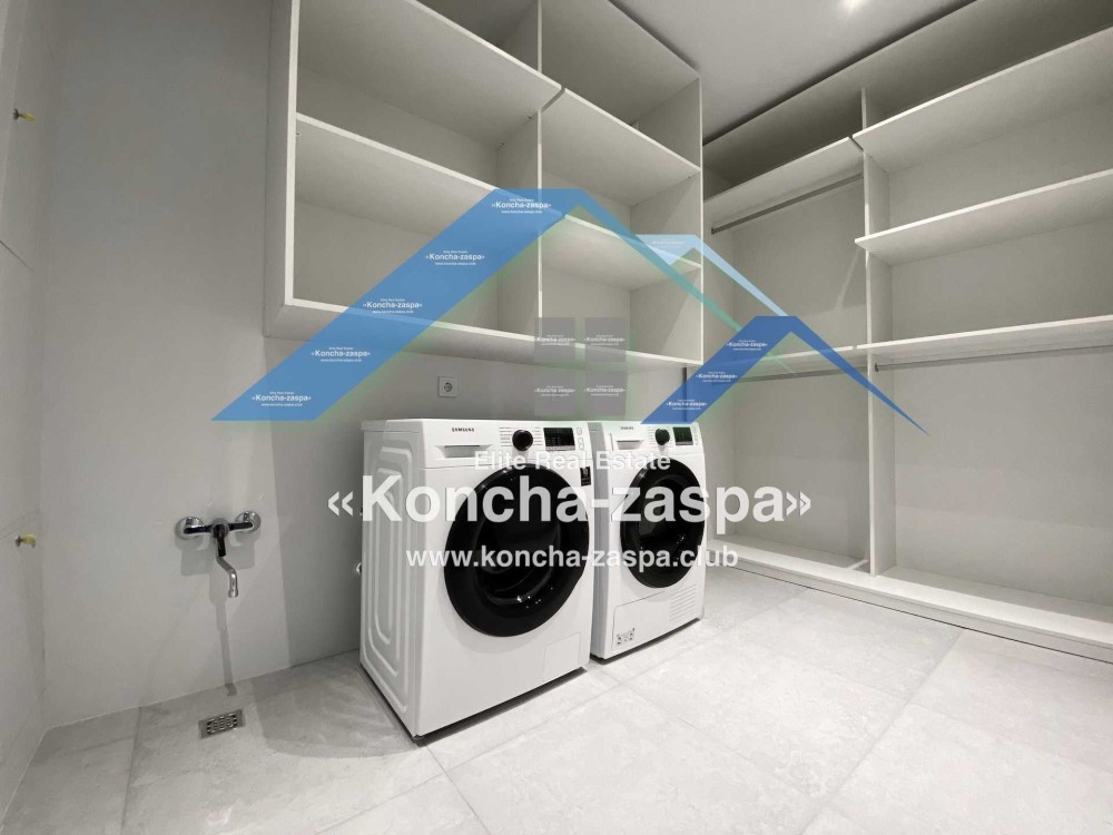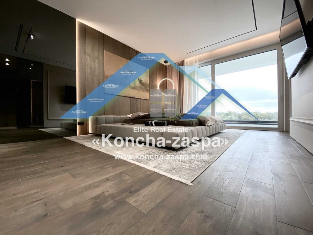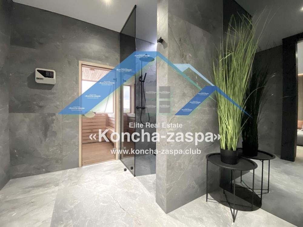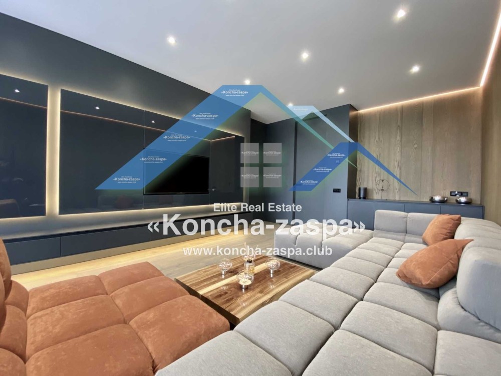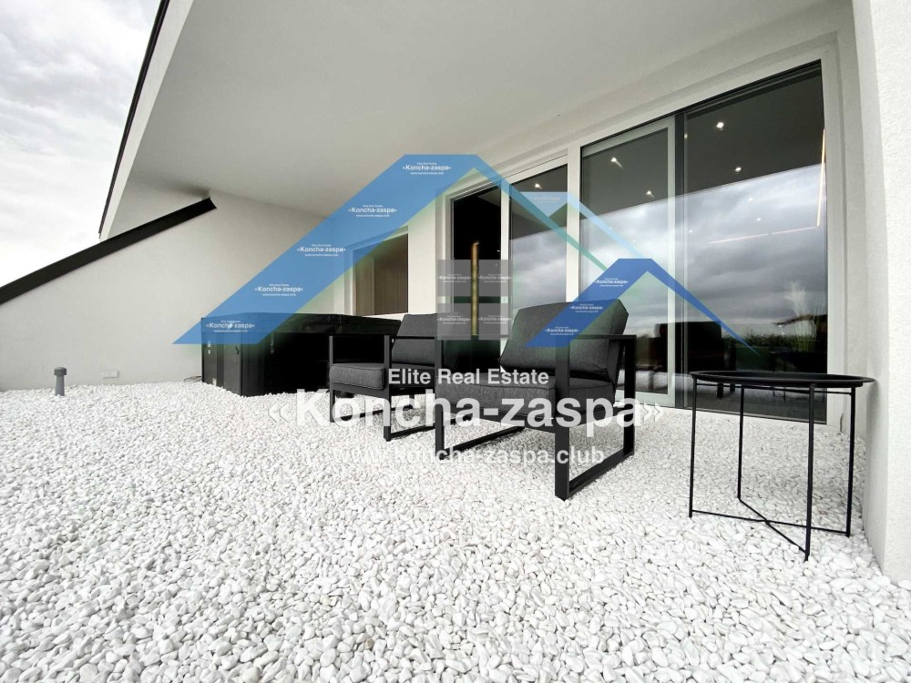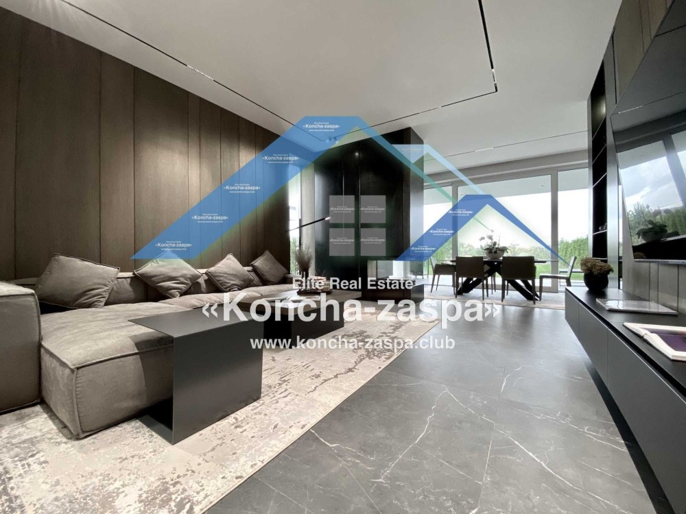 Дома дуплексы 300м2 с ремонтом и мебелью премиум-класса, выполнены из высококачественных материалов в ультрасовременном дизайне из натуральных материалов. 1-й этаж — прихожая, большая гардеробная, просторная гостиная с двухсторонним камином, столовая зона с панорамным окном и выходом на террасу, кухня, гостевой с/у; 2-й этаж - две спальни, два с/у, хозяйская спальня со своим с/у и двумя гардеробными; 3-й этаж - лаунж-зона, комната отдыха, выход на террасу с джакузи, сауна, с/у, бытовая комната укомплектованная стеллажами, стиральной и сушильной машиной Samsung. Полы с подогревом, котел Wiesmann; система Умный дом; Алюминиевые витражные окна; система двойной водоочистки; сантехника Hansgrohe, Grohe, Geberit, Devit; кухня Rait с фасадами из натурального дубового шпона, столешница - мрамор, техника Miele, Liebherr; мягкая мебель Bonaldo, двери Elio. Настенные панели - натуральный дубовый шпон. Участок 5 соток, высажен травой и туями, оборудован автополивом.