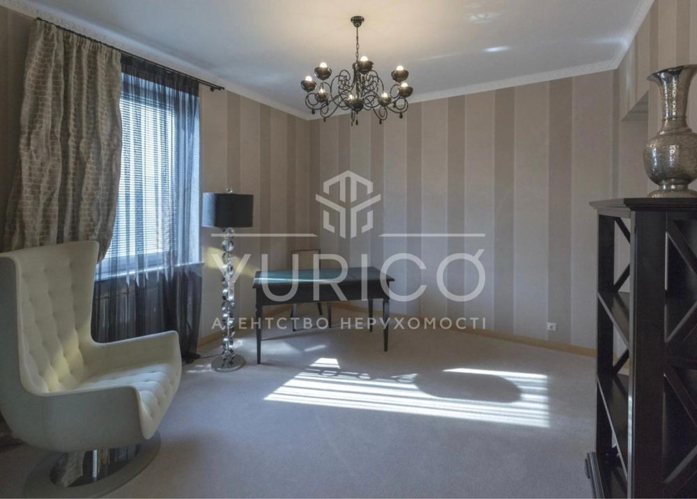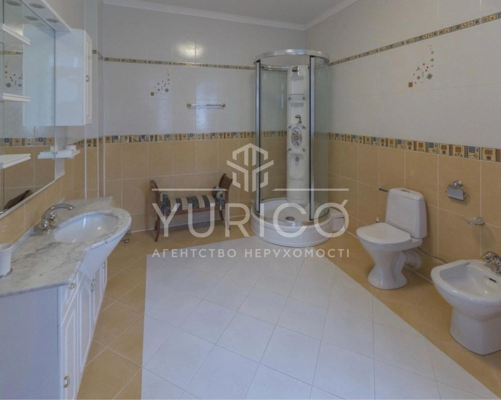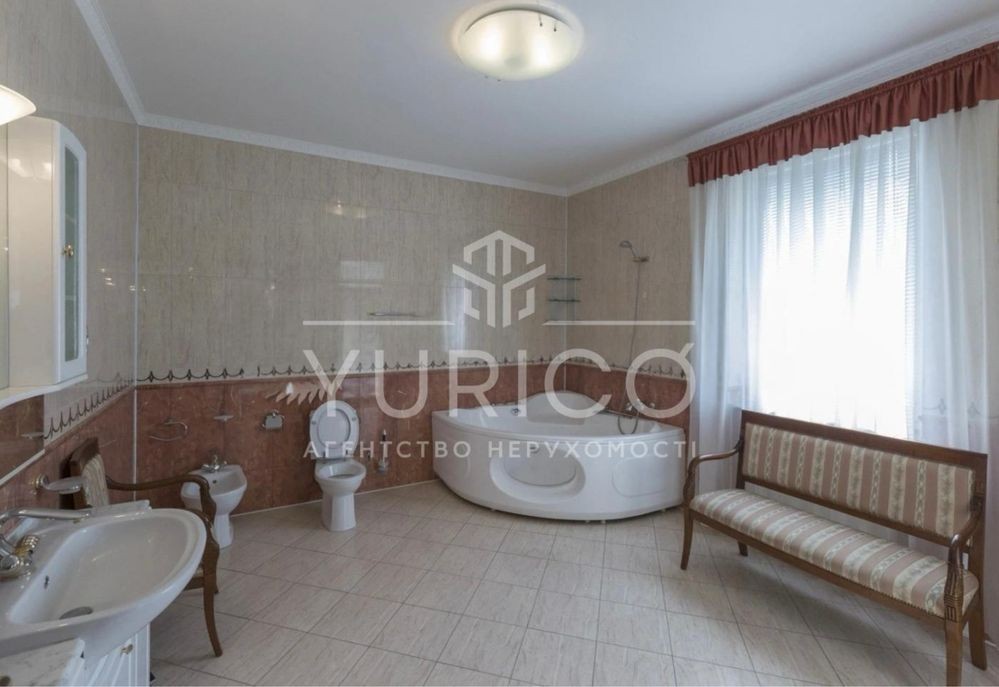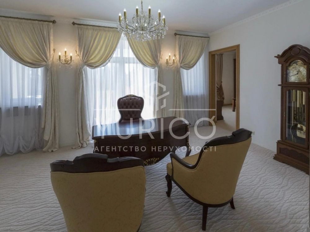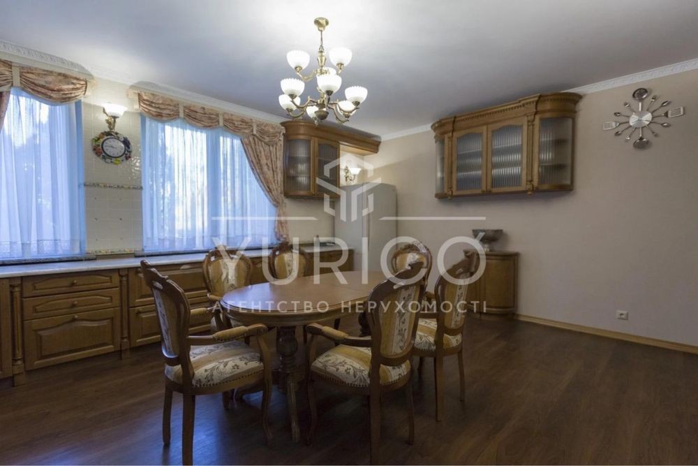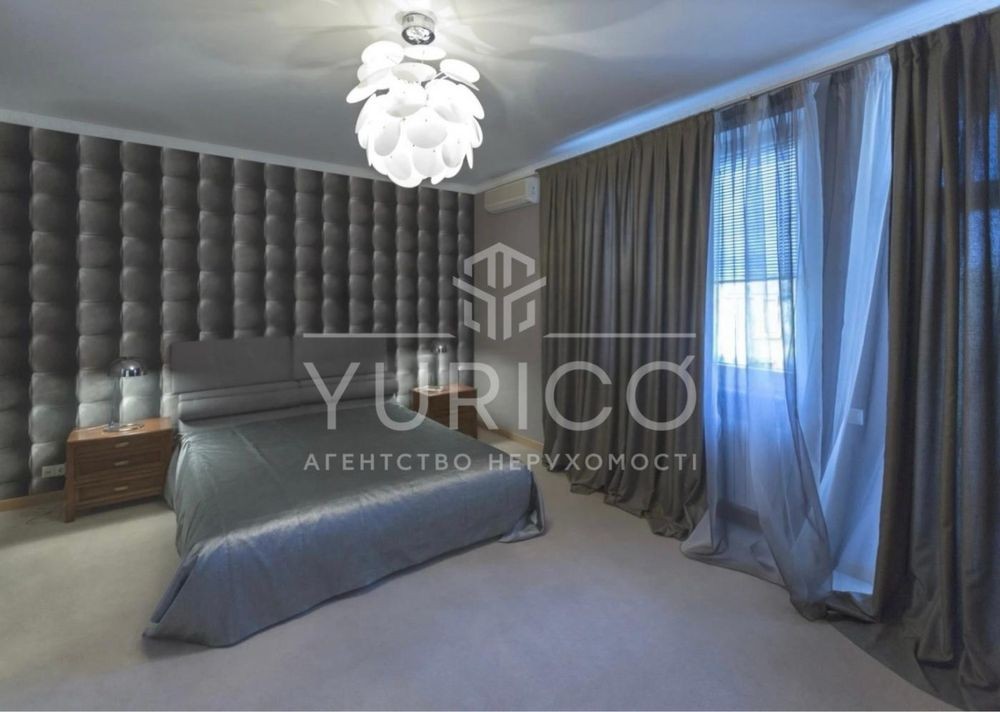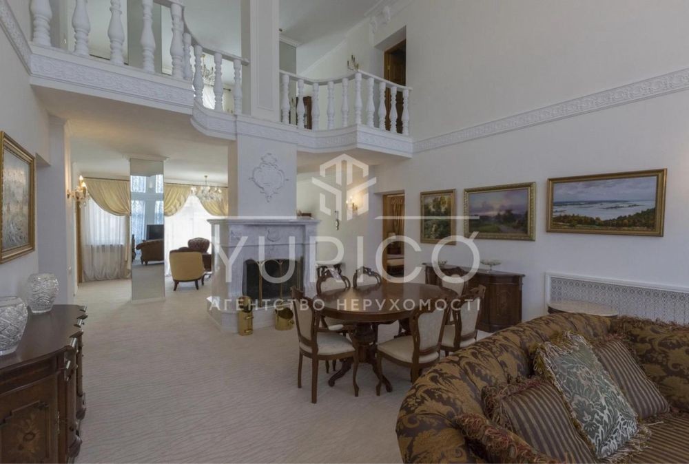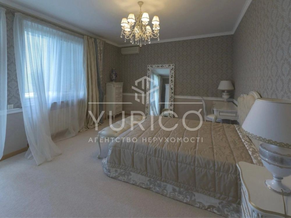 Конча-Заспа. Оренда домоволодіння в закритому котеджному містечку, три рівня, вітальня з каміном, друге світло, обідня зона, 7 спальних кімнат, кабінет, 6 сан.вузлів, басейн з підігрівом, сауна, вся необхідна побутова техніка та меблі. Земельна ділянка 68 соток, прямий вихід на р. Козинка, окрема альтанка з зоною грииль.