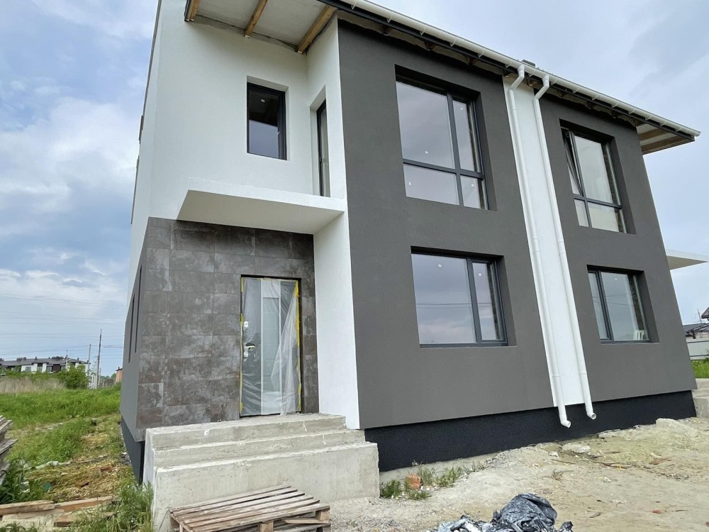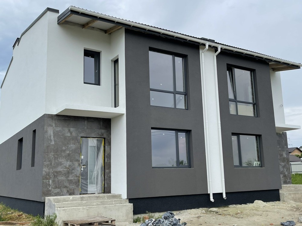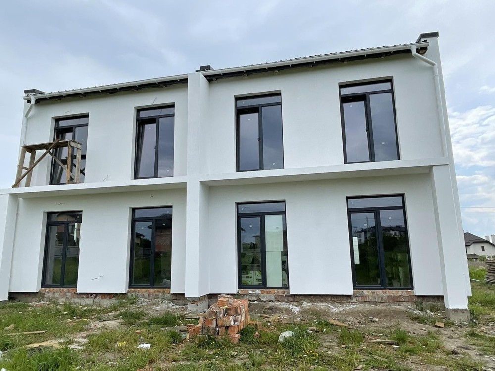 Котедж спарений 125м2.цегляний повноціний 2 поверх.Утеплений пінопласт 100.Грінпласт.Дах мет.Арцелор 0,5мм.Нім.виробник.Вікна 7кам.профіль енергозберігаючі склопакети виробник Нім.Штукатурка внутрішня вапняна Штук.