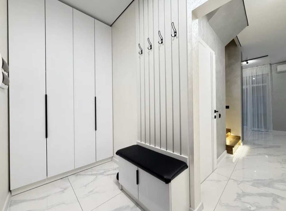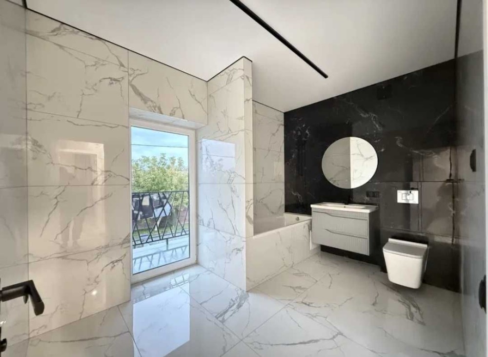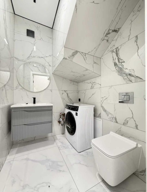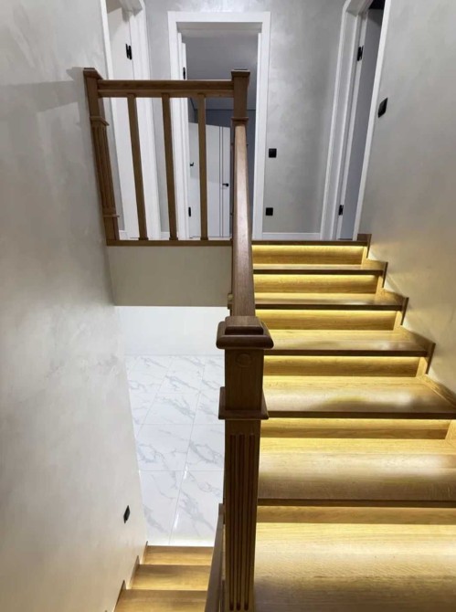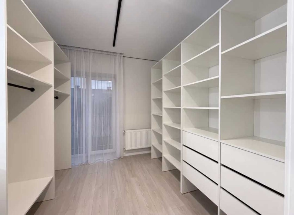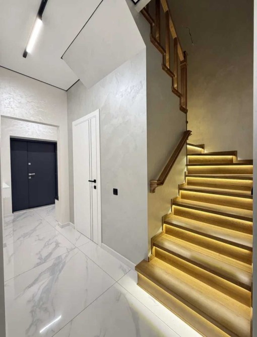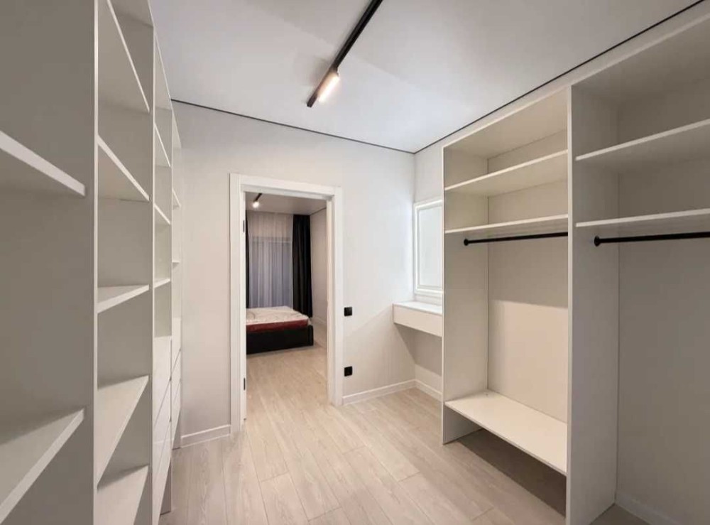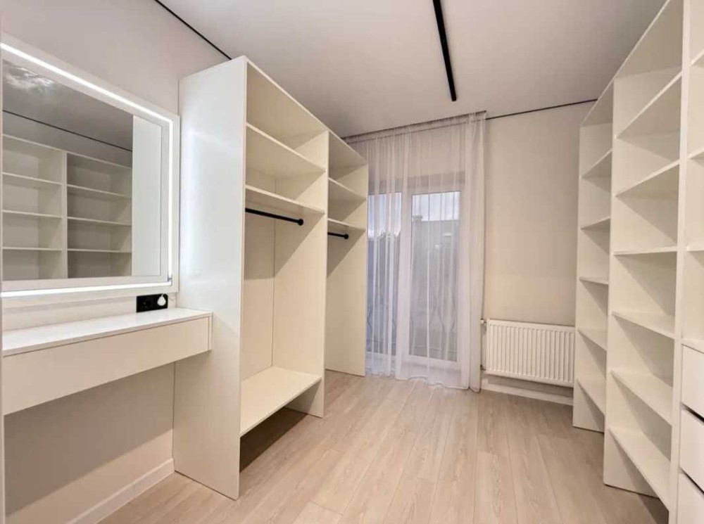 Два поверхи, два санвузли, три кімнати + гардеробна, кухня-вітальня.