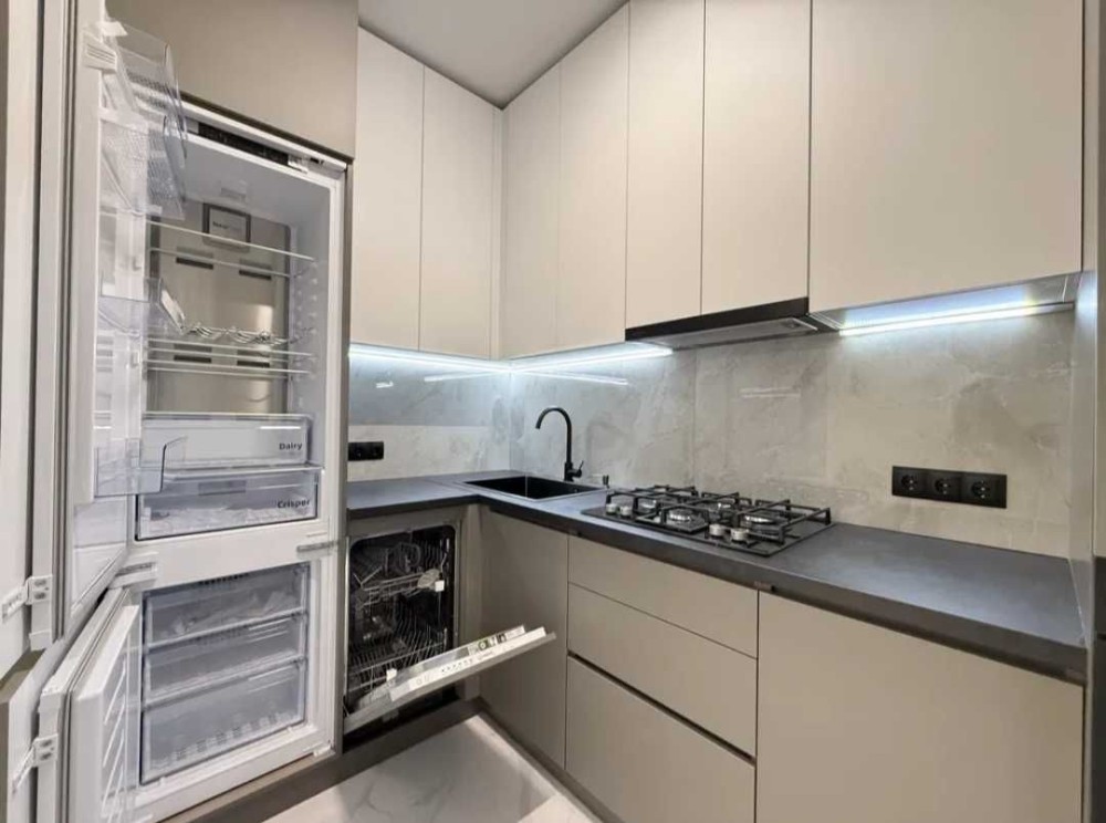 Вмонтована кухня з побутовою технікою, кондиціонер.