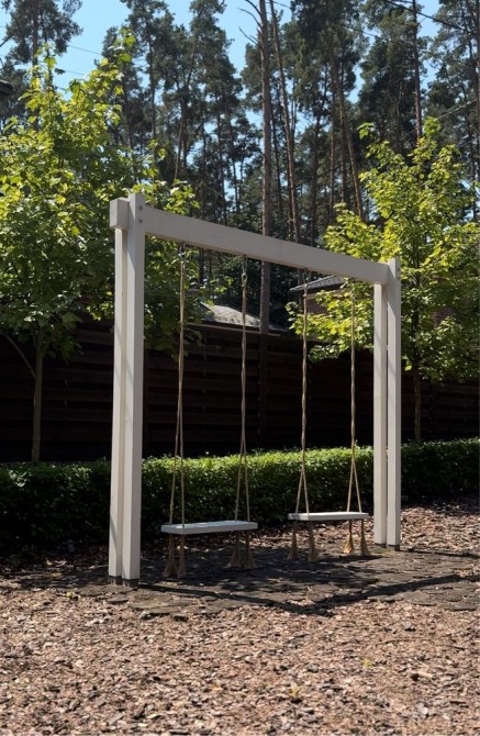 Приватна територія облагороджена: встановлено кований паркан на бетонній основі з колонами з клінкерної цегли Wienerberger, викладено бруківкою «Золотий Мандарин», завезено родючий чорнозем для озеленення.