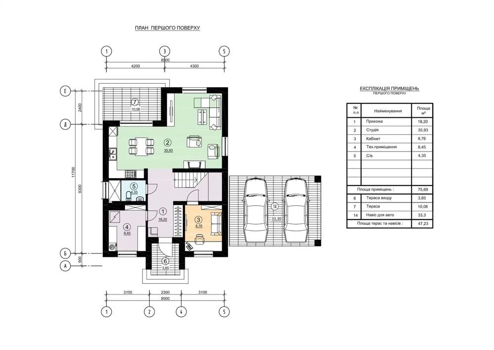 Вікна — енергоефективні REHAU, перекриття — пустотні залізобетонні плити, сходи — бетонні.