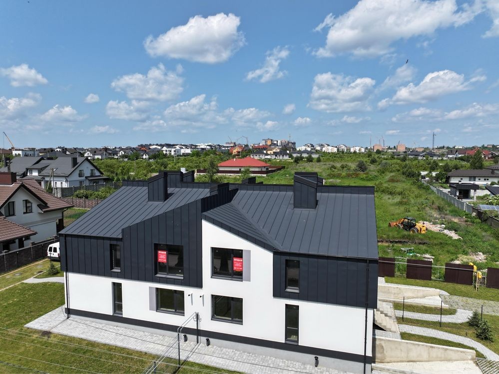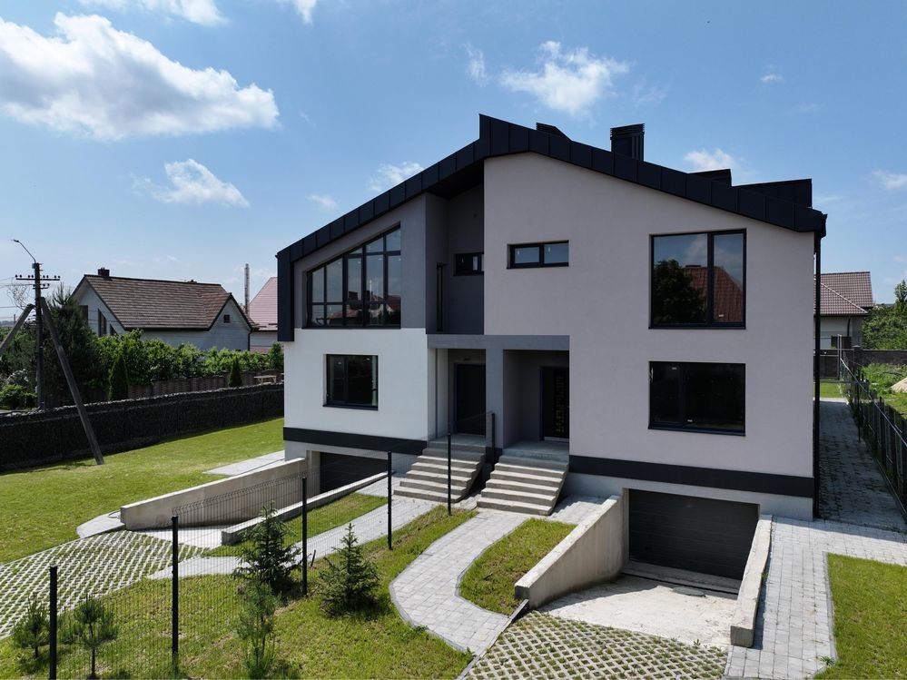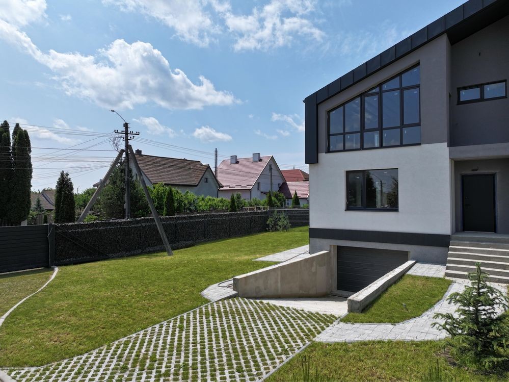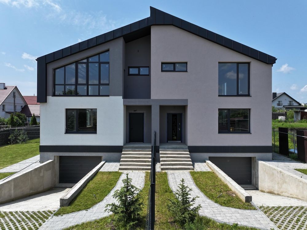 Котедж з гаражем район Щасливе — сучасний проєктз ділянкою
