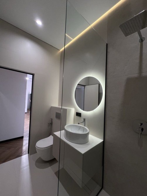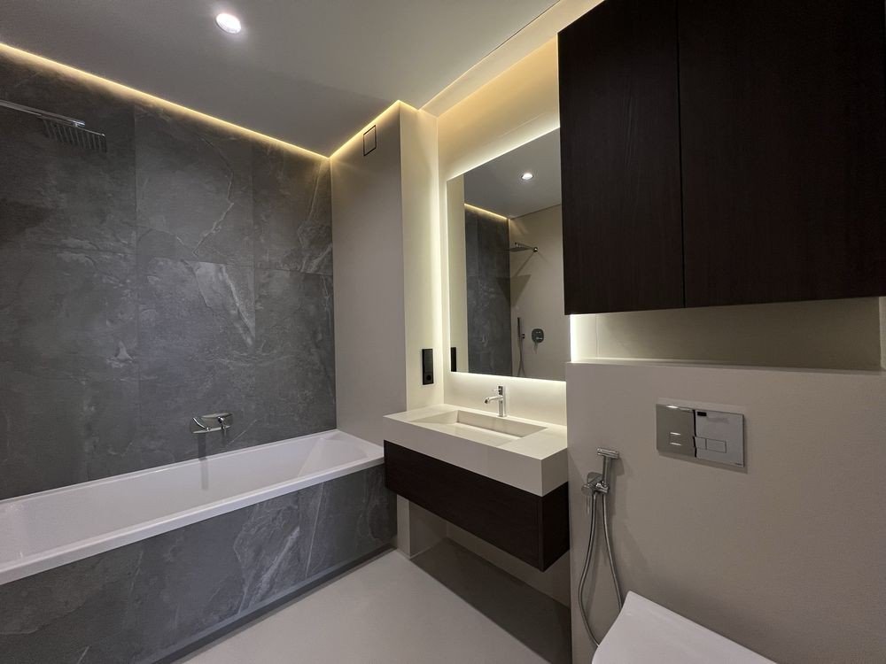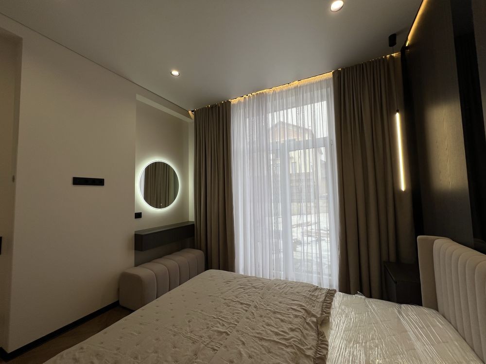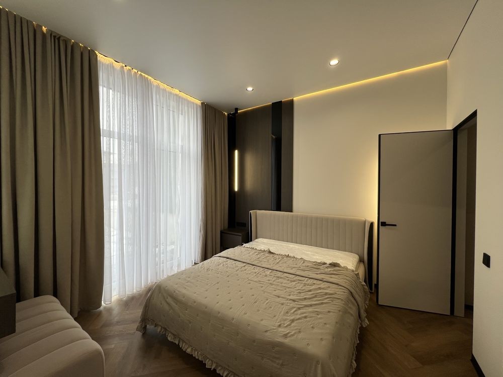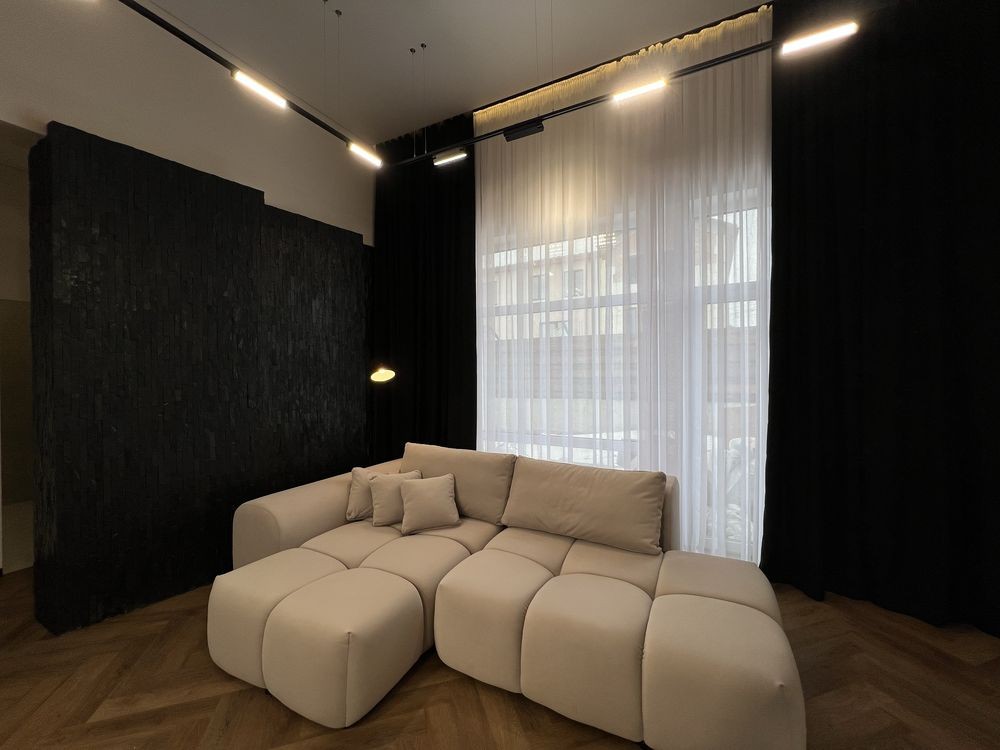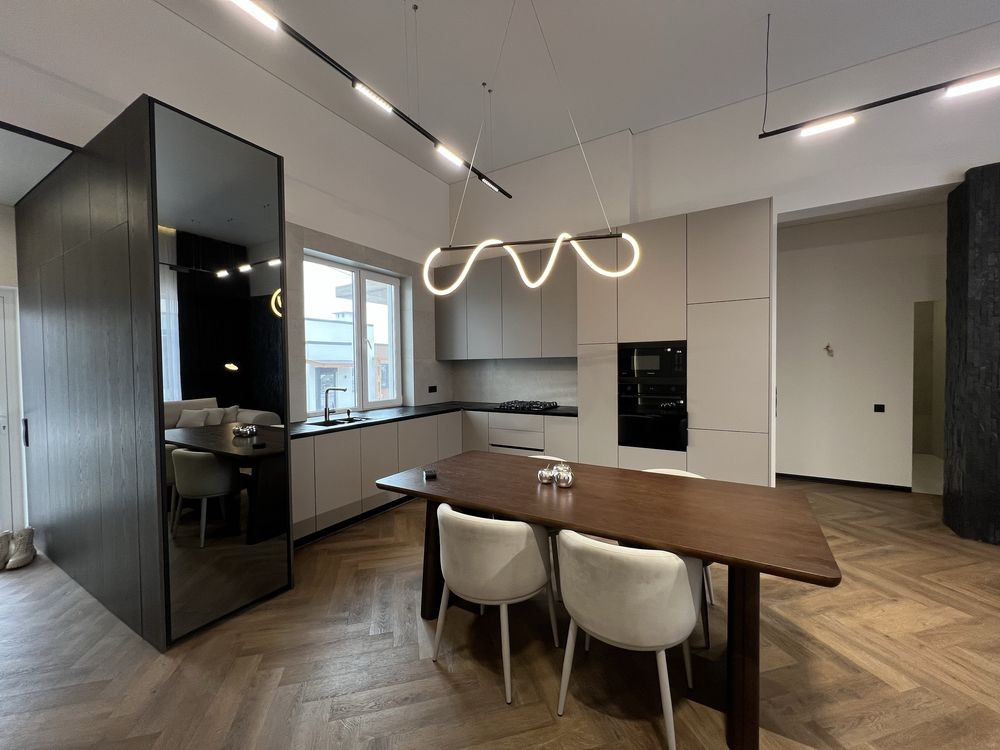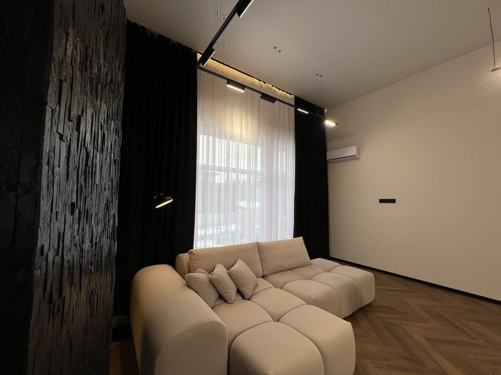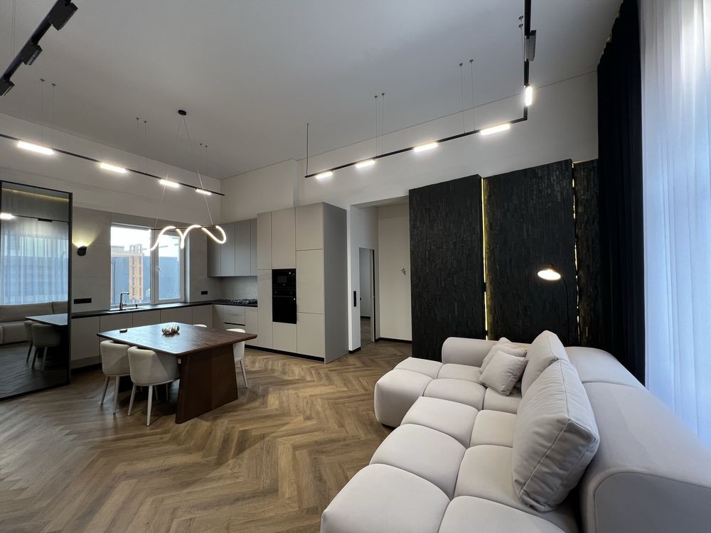 Якісний дизайнерський ремонт із натуральним каменем, німецьким вінілом та індивідуальними сценаріями освітлення в кожній зоні.