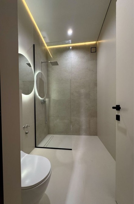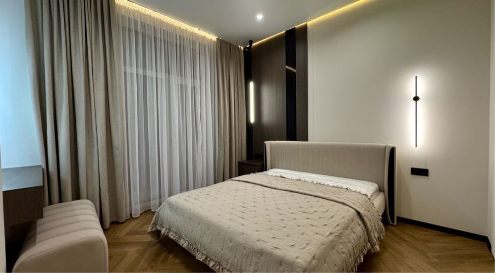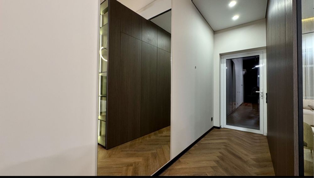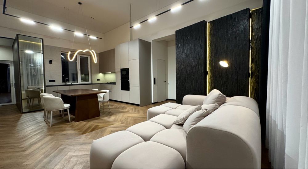 Виконаний якісний дизайнерський ремонт із використанням натурального каменю, німецького вінілу та різних сценаріїв освітлення в кожній зоні.