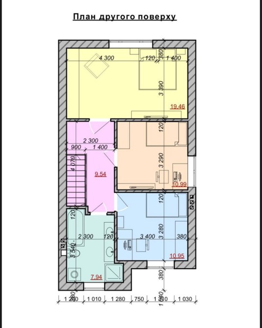 2 поверх — три окремі кімнати та ще один санвузол