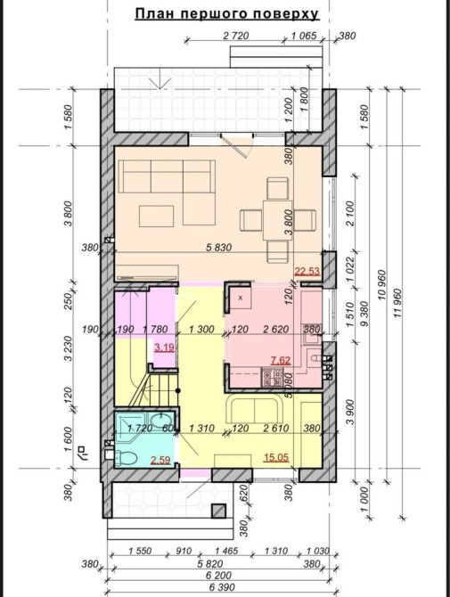 1 поверх — окрема кухня, простора вітальня, гардеробна, санвузол, тамбур