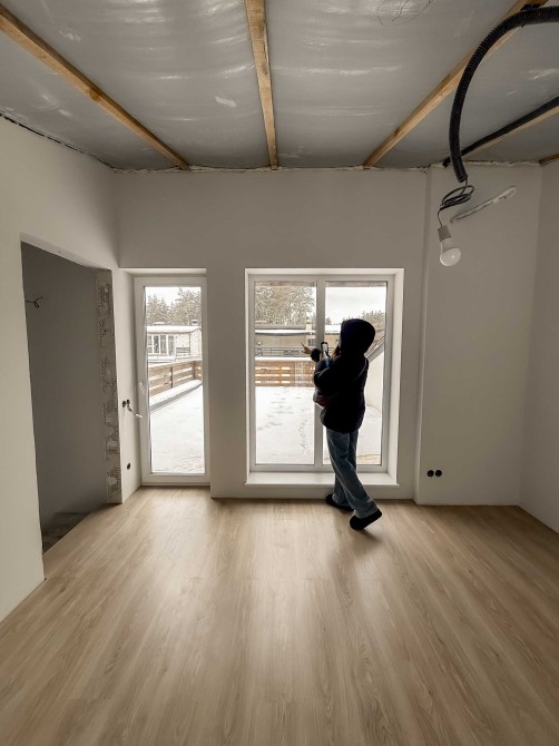 Планування: три окремі спальні, два санвузли, простора кухня-вітальня. Світлий, сучасний ремонт у нейтральних тонах. Фото надані на стадії завершення ремонту — здача будинку орієнтовно через місяць.