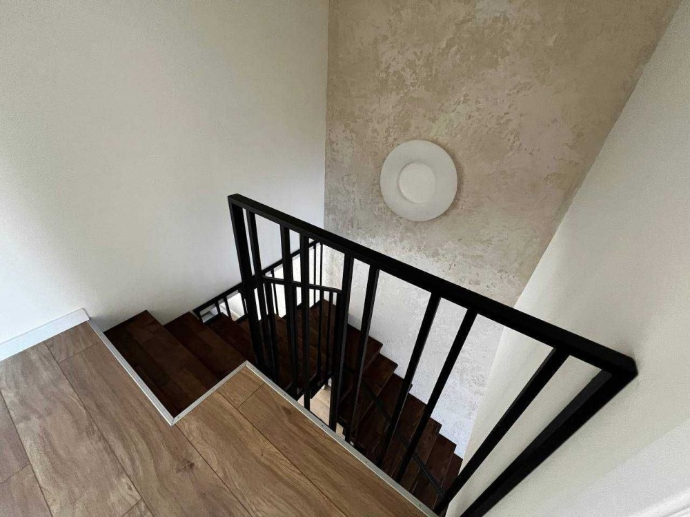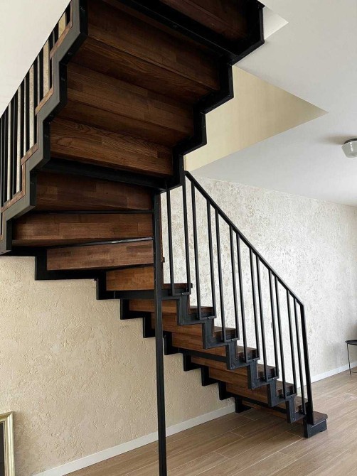 Сходи обшиті деревом ясен, металеві сучасні перила. Безпечна для дітей та тварин.