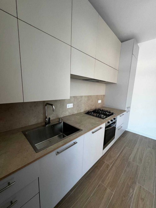Сучасна кухня зі зручною та раціональною системою зберігання. Стільниця виконана з фінської фанери з покриттям HPL, не боїться гарячого та води.