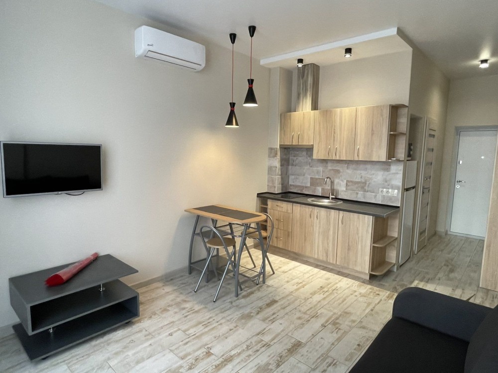 Сдаётся просторная красивая 1 ком смарт квартира на Бочарова Сахарова В квартире сделан качественный ремонт. Установлена вся новая мебель и техника. В комплексе установлен генератор, вода и отопление есть всегда. 6500+коммунальные.