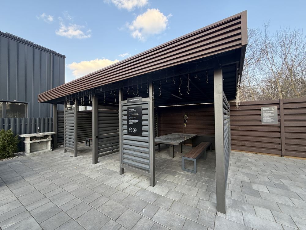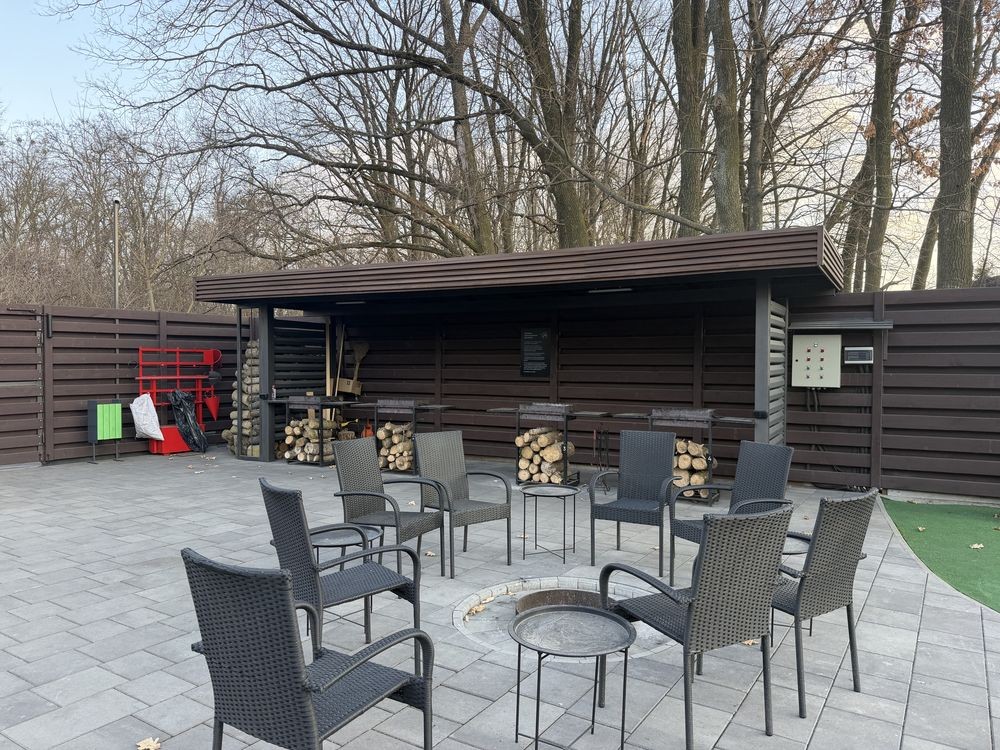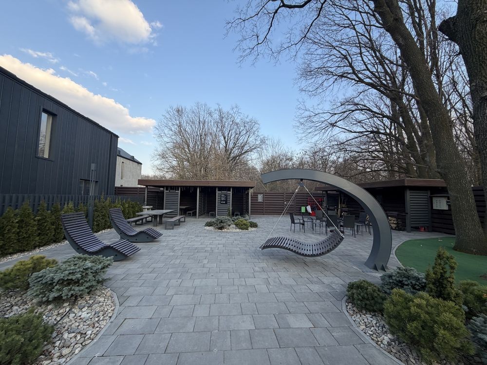 В котеджному містечку є доглянута зона барбекю повністю облагороджено, дитячий майданчик та вихід до мальовничого лісу та комплексу відпочинку «Характер парк».
