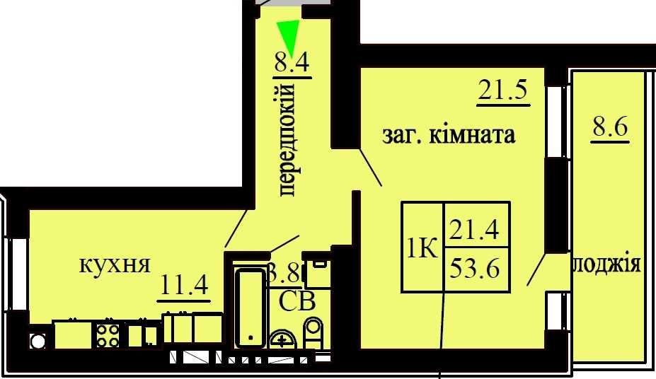 • Общая площадь 54 м2