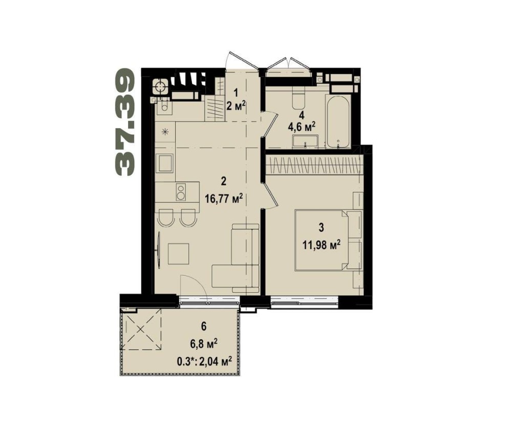 Однокімнатна квартира у сучасній новобудові. Підземний паркінг, закритий зелений внутрішній двір з дитячим та спортивним майданчиком, а також зонами відпочинку. Ідеальне місце для життя.