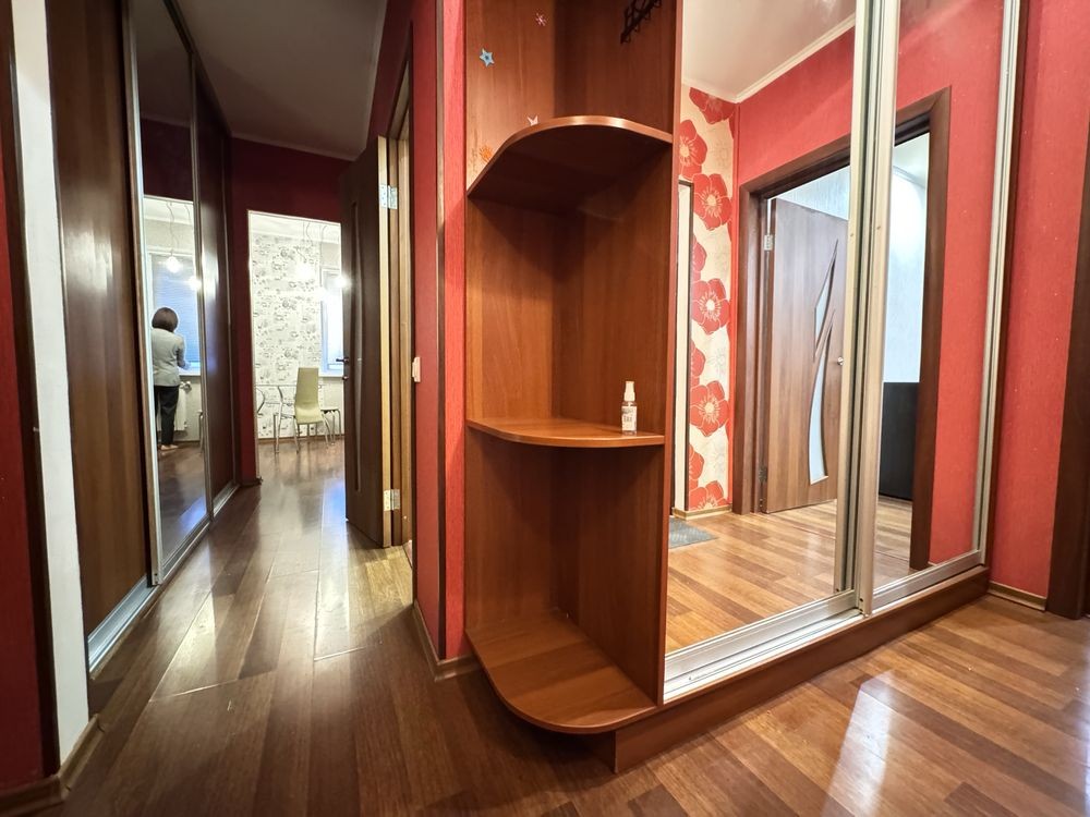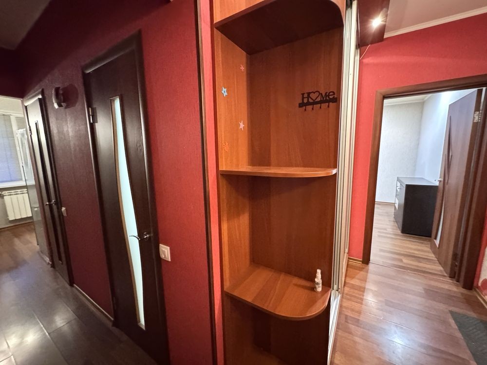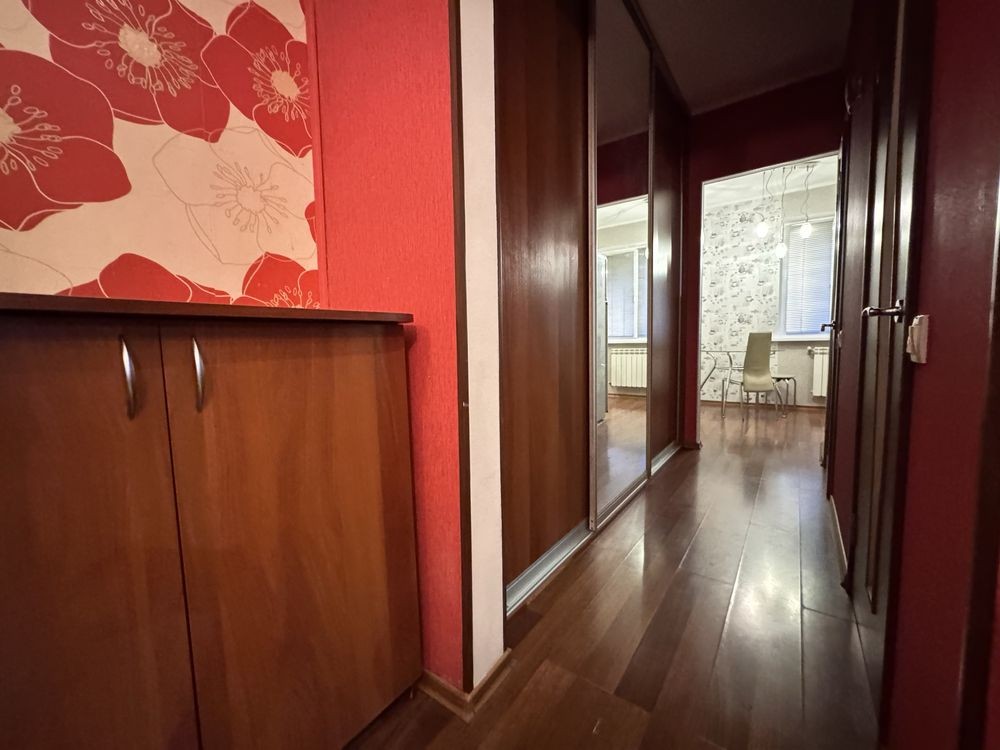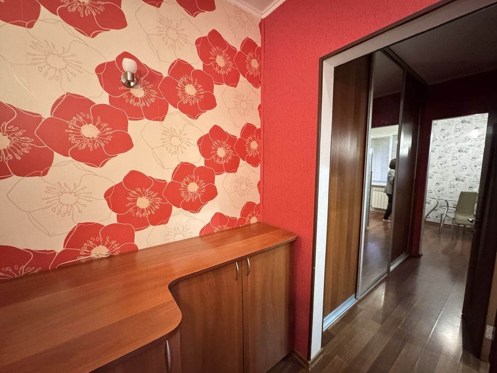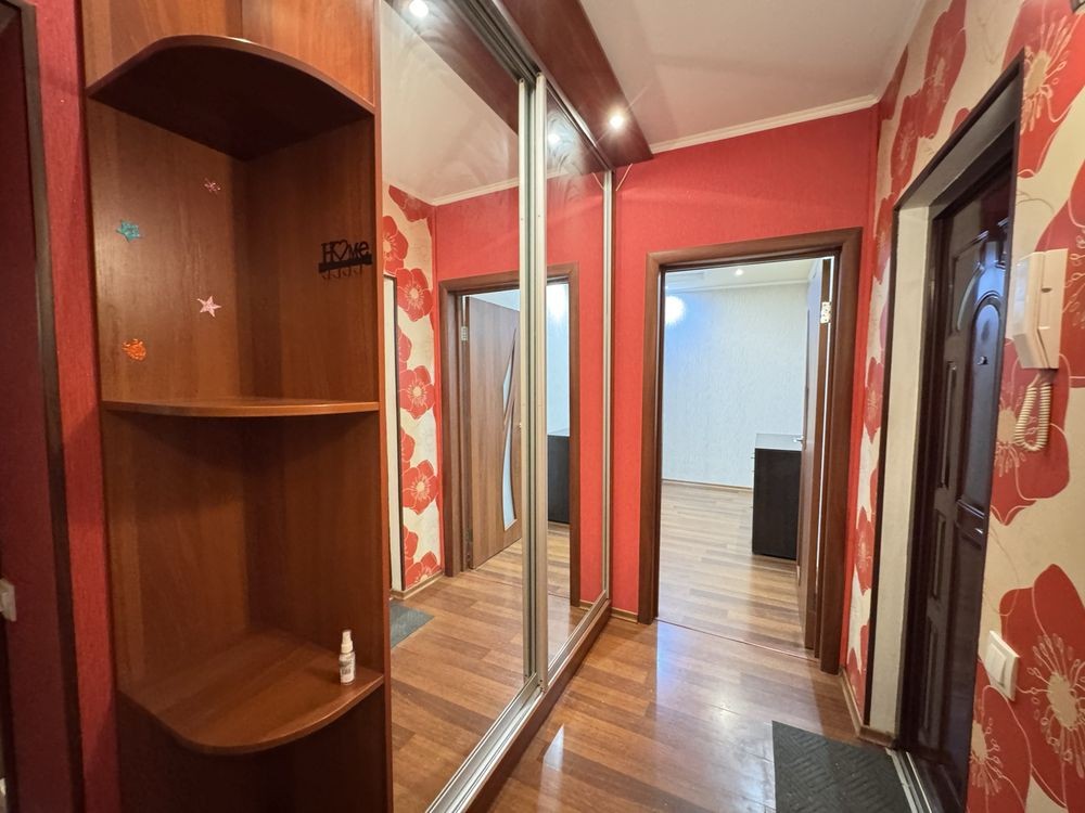 Зручне планування: простора прихожа з шафою-купе, кімната з виходом на засклену лоджію, окремий санвузол, кухня 8 м2 Встановлений бойлер на 80 л. Є лічильник на опалення — економія та можливість регулювання.