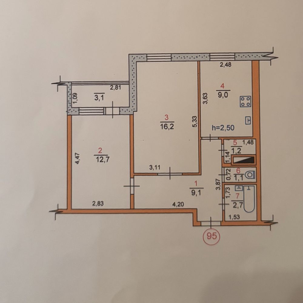 • Общая площадь 55.1 м2