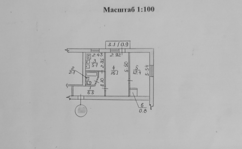 • Площадь кухни 6 м2
