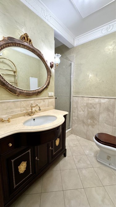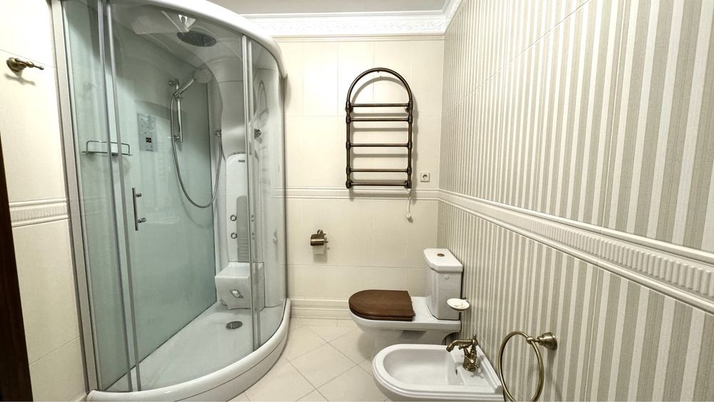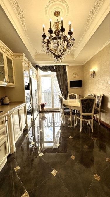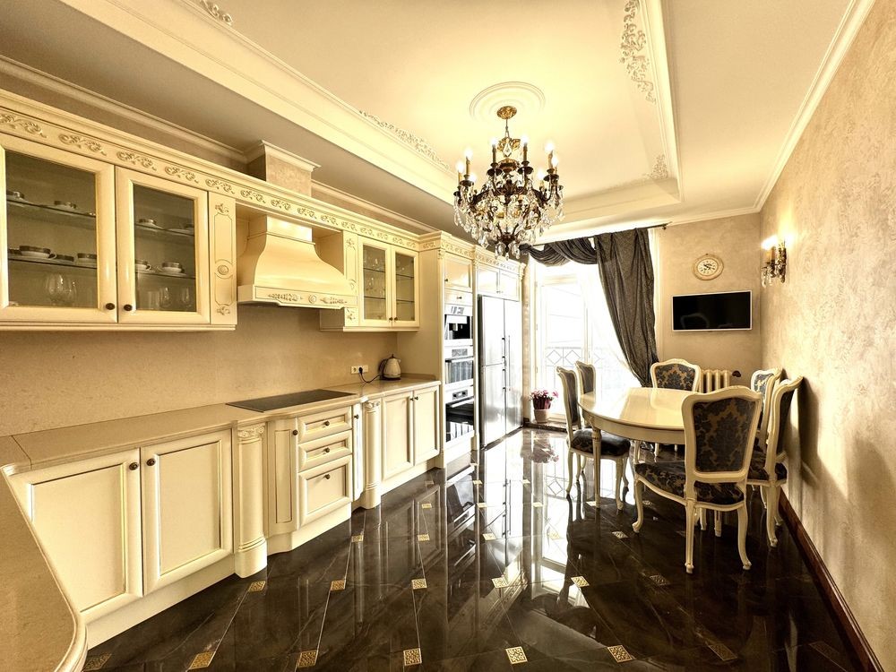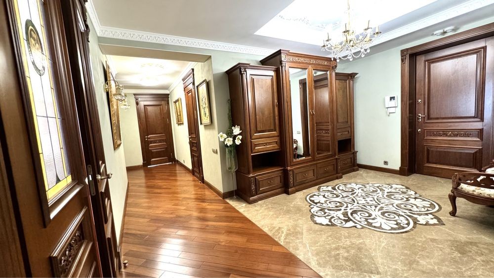 Квартира площею 150 кВ.м розташована на 7 поверсі. В квартирі: просторий передпокій , гардероб, пральня. Кухня укомплектована всією необхідною технікою, вітальня , господарська спальня зі своєю ванною кімнатою ( душова кабіна), 2 с/у ( душ і ванна ), спальня гостьова ( може використовуватись як кабінет чи дитяча). Кондиціонування кожної кімнати, підігрів полу, бойлер , пральня і сушильна машина ( Miele ), підігрів підлоги , натуральна паркетна дошка ). Будинок з підземним паркінгом, який слугує бомбосховищем . Охорона будинку та території.