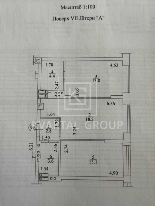 - Загальна площа: 56 м².