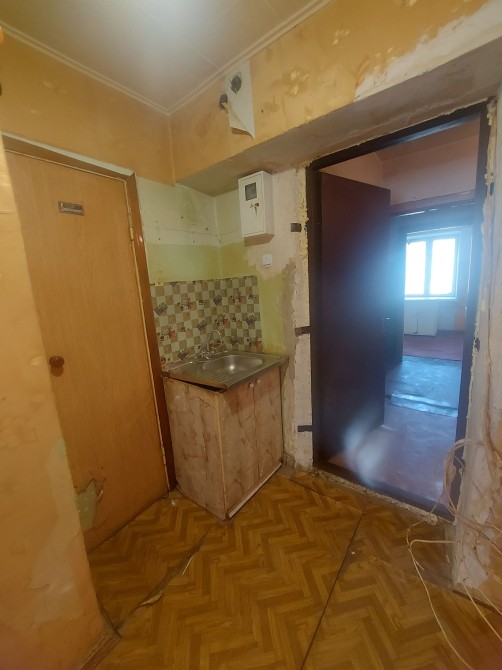Квартира-гостинка на 2/5 кирпич.дома,не угловая, 24кв, комната 12м со своим санузлом, коридором, мойкой и общей кухней, где своя газ/плита. В тамбуре 4 квартири., все соседи отсутствуют. Состояние: требуется ремонт, окно мет.пласт, ванна сидячая, кафель норм.,бойлер нерабочий. Дом ОСББ.