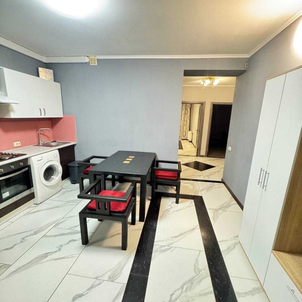 В квартире есть вся необходимая мебель и техника- стиральная машина, холодильник, телевизор, колонка.