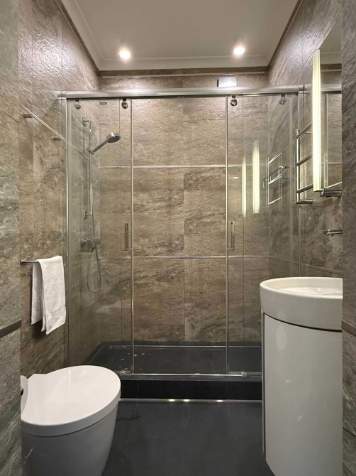 • Комфорт Кондиционер, Подогрев полов, Ванна, Душевая кабина, Мебель на кухне, Гардероб, Терраса, Панорамные окна, Сигнализация, Пожарная сигнализация, Видеонаблюдение, Консъерж, Гостевой паркинг, Подземный паркинг, Лифт, Грузовой лифт