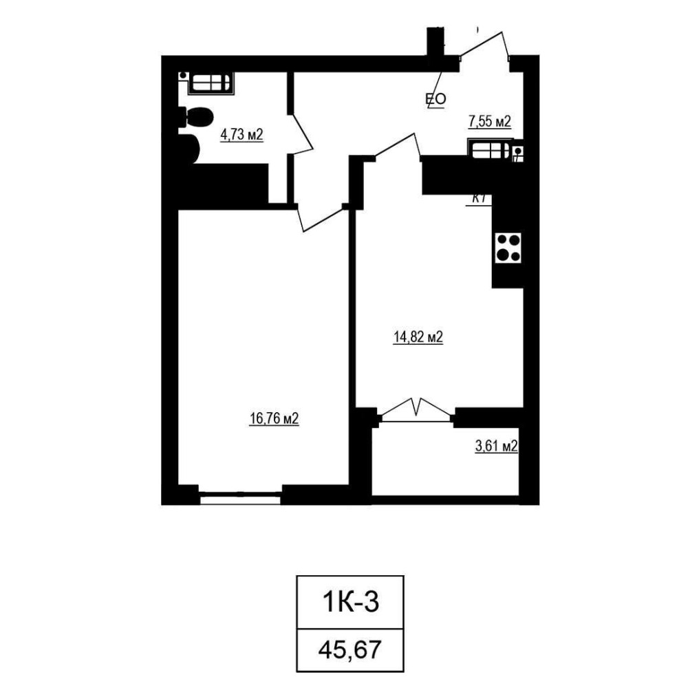 • Общая площадь 45.67 м2