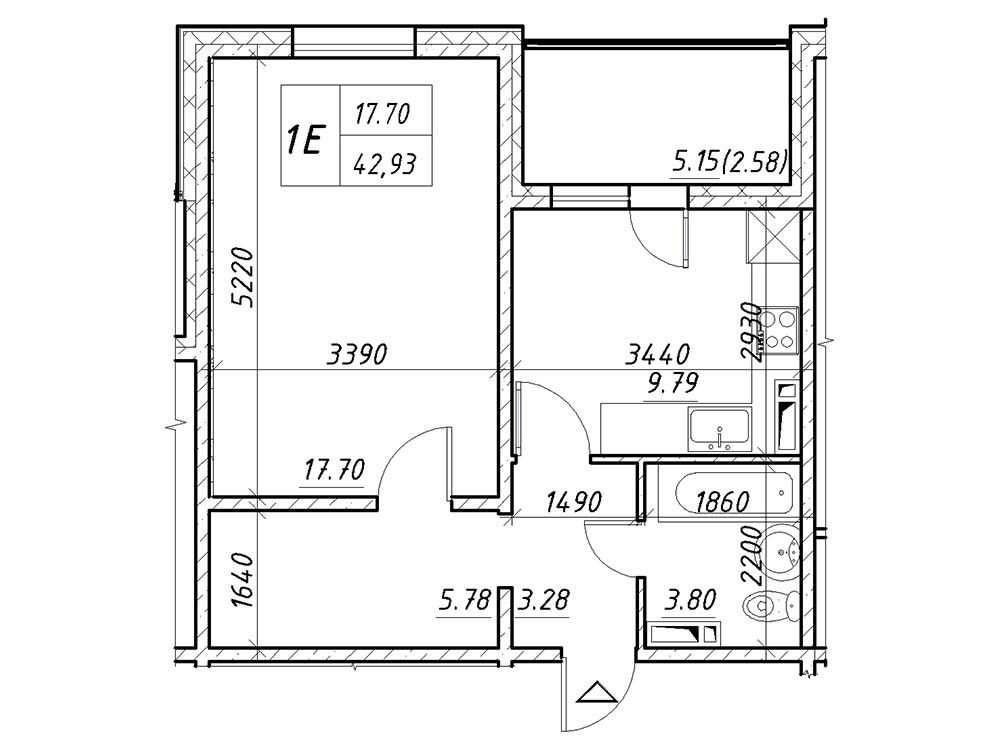 • Общая площадь 42.93 м2