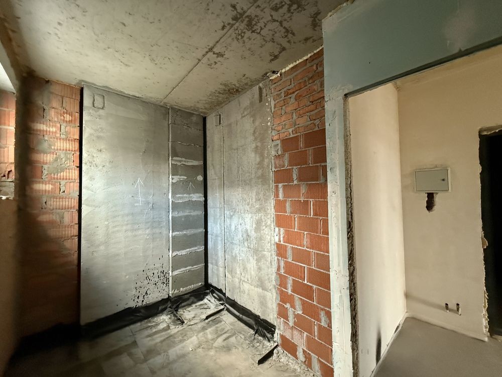 Наповнення:лазерна стяжка підлоги, чистова штукатурка стін, вікна, двері, лічильники на всі комунікації, комунікації підведені до квартири.