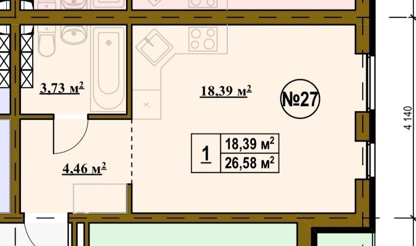 • Общая площадь 26.58 м2