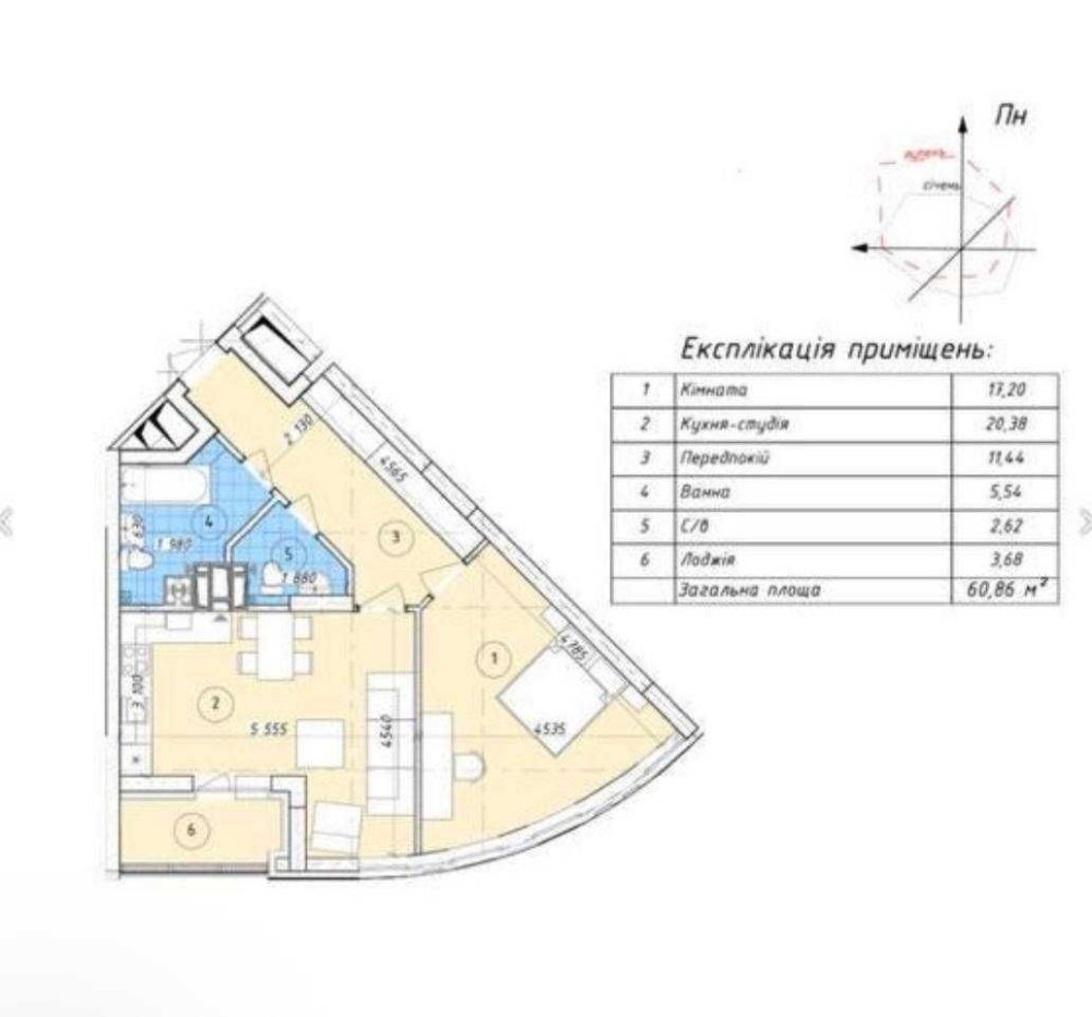 • Общая площадь 60 м2