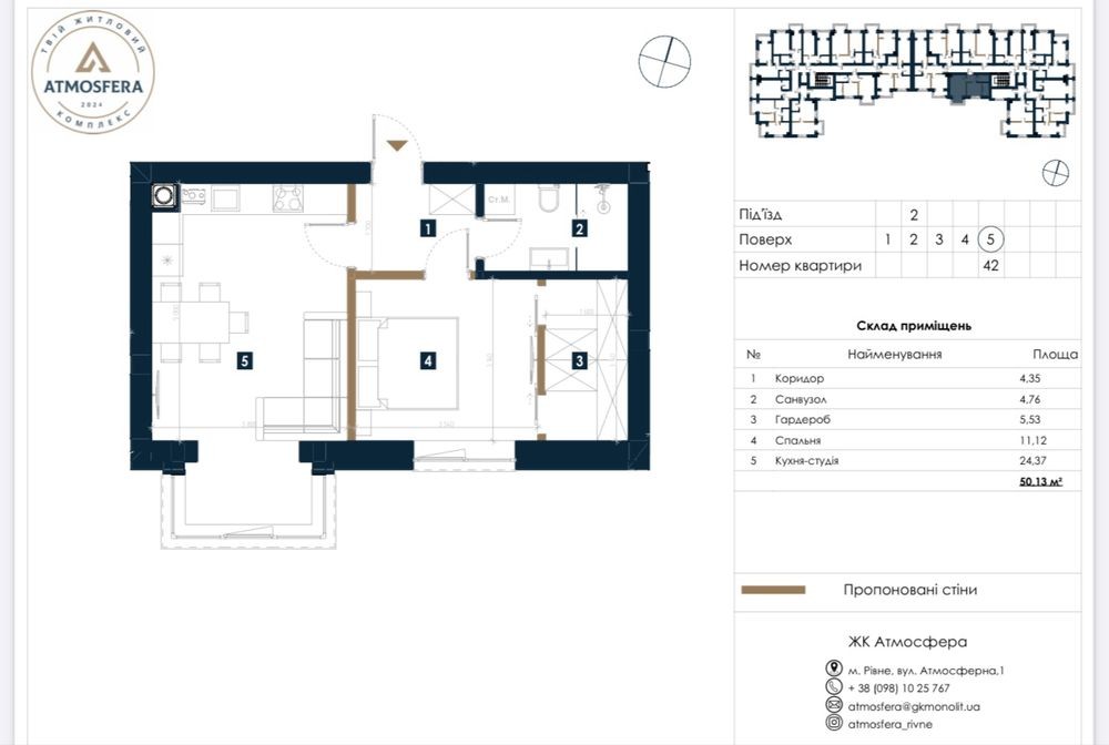 Квартира у новобудові ЖК Атмосфера від Забудовника - 50.13 м2