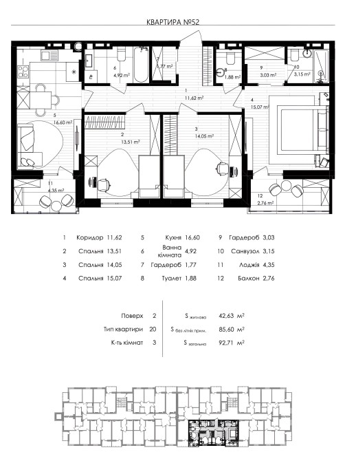 Загальна площа - 92,71 м2