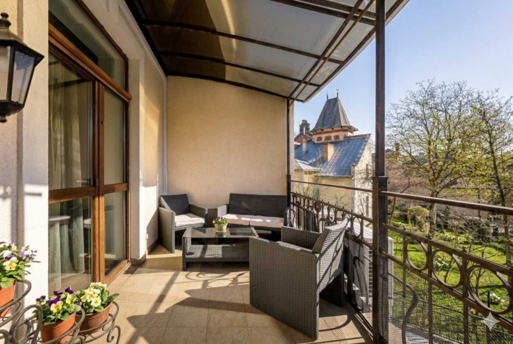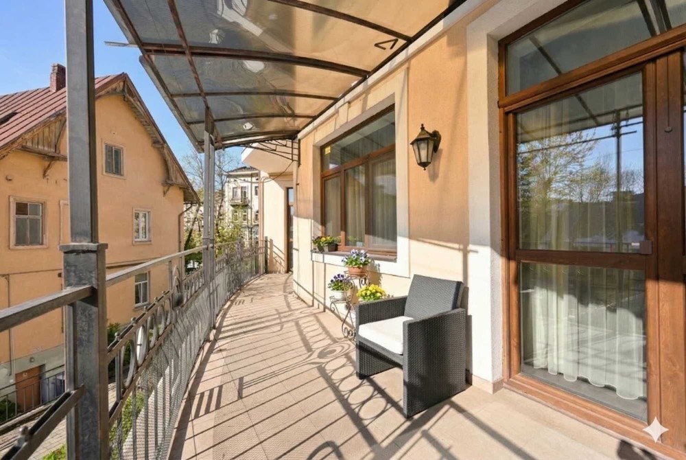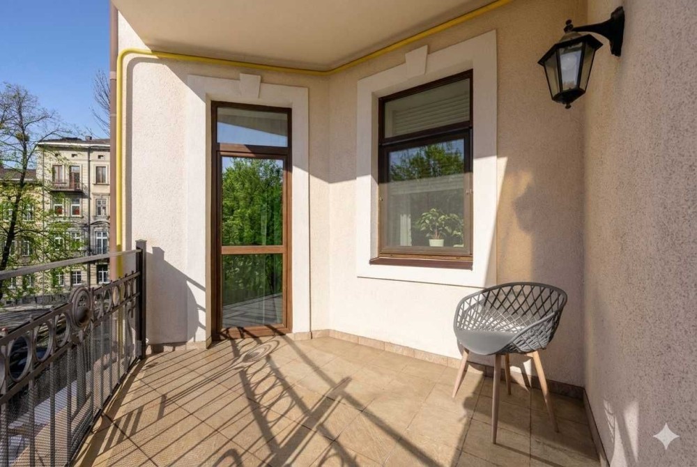 Вікна та тераса виходять в затишне подвір'я та на львівські вілли старовинної Кастелівки.