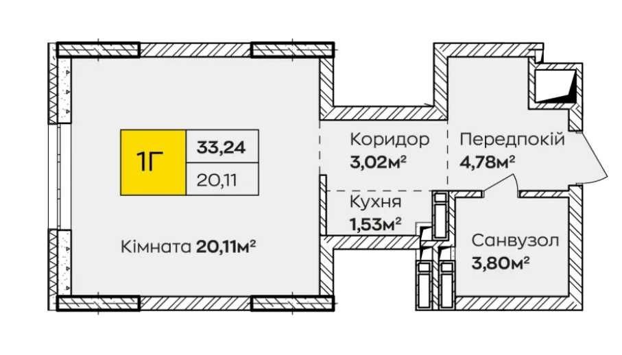 Продається 1-кімнатна квартира №149 площею 33.24 м² у сучасному ЖК «Синергія Київ».