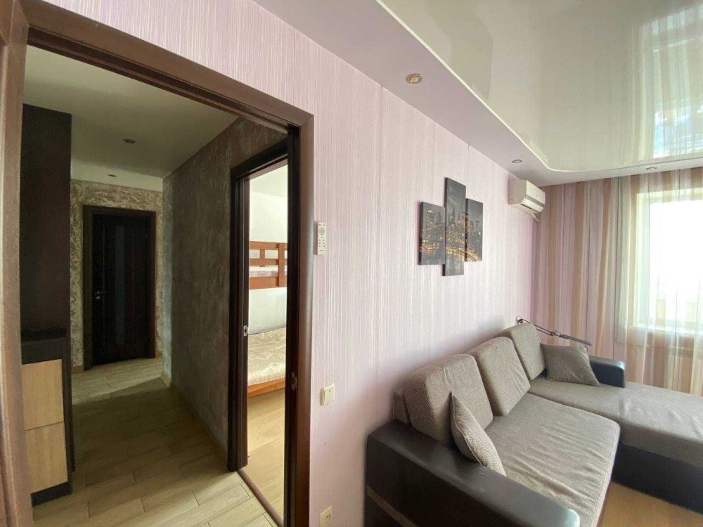Расположена на восьмом этаже девятиэтажного дома, в середине секции — очень тёплая. Общая площадь — 47 кв. м, кухня — 8 кв. м. Из окон открывается красивый вид. Квартира не требует дополнительных вложений — можно сразу заезжать и жить.