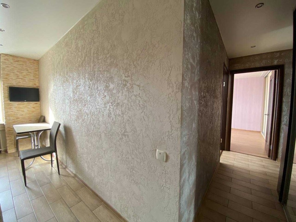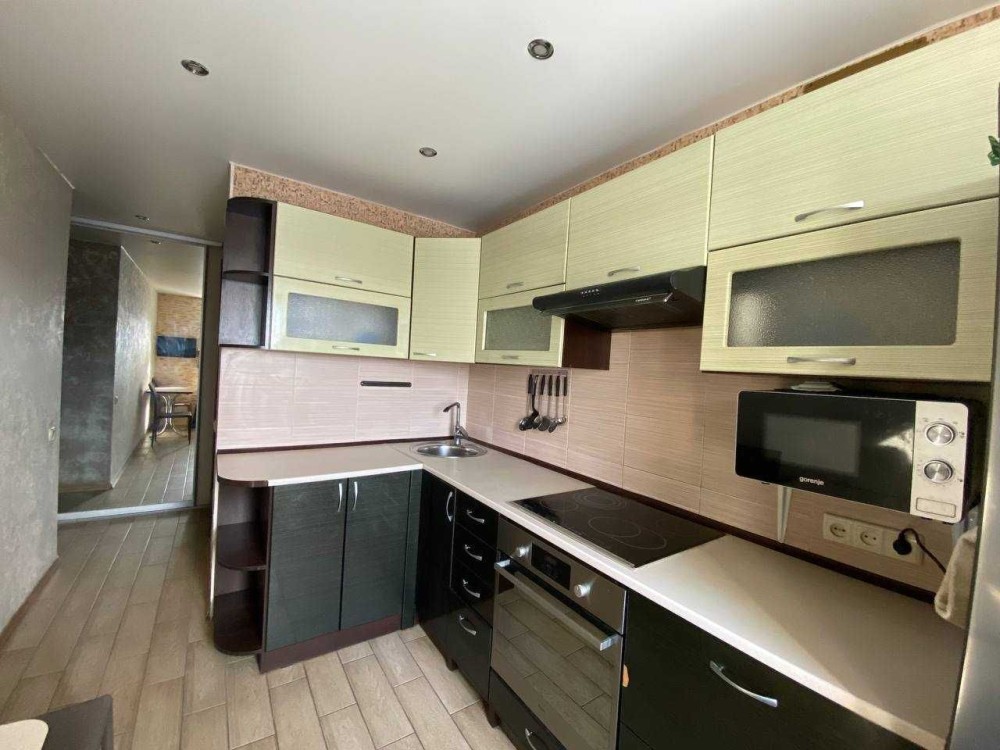 На кухне выполнена плиточная облицовка рабочей зоны, установлена встроенная мебель и техника: духовой шкаф, варочная индукционная панель, вытяжка. Межкомнатные двери — из натурального дерева. В коридоре установлен большой шкаф-купе. В гостиной есть кондиционер. Установлены счётчик воды и бойлер.