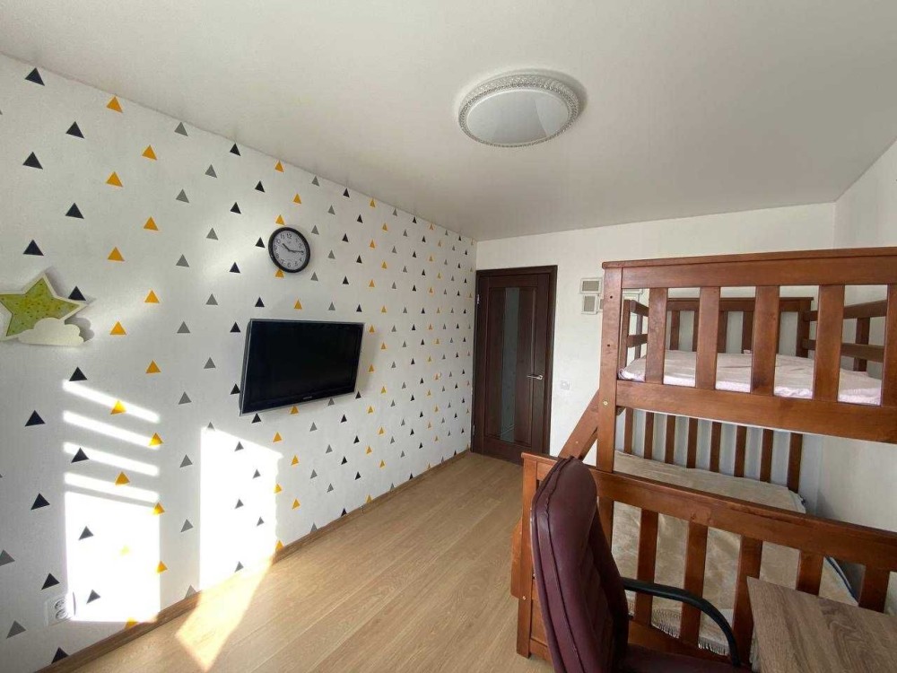 Выполнен капитальный ремонт. Заменены все основные коммуникации: полностью обновлена электропроводка, трубы и сантехника. Установлены металлопластиковые окна. Сделана стяжка пола, выровнены стены и потолки. В коридоре, кухне, ванной комнате и санузле уложена плитка, в жилых комнатах — ламинат. Потолки — натяжные.