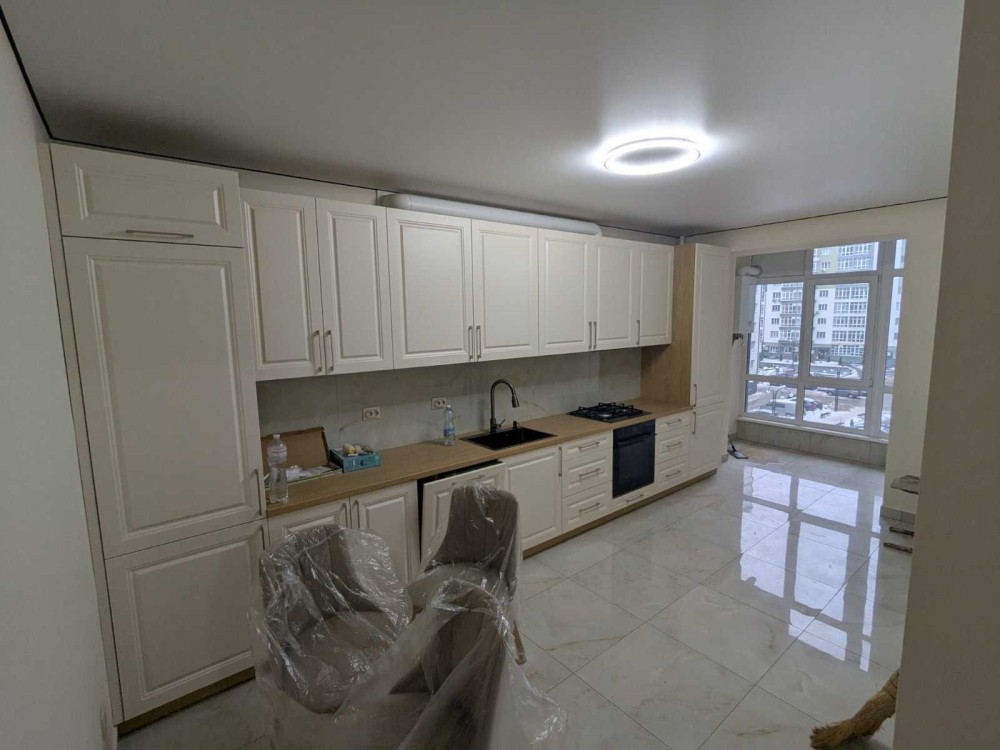 Житлова площа 16 кв.м. 19 кв.м. площа кухні. У квартирі суміжний санвузол. З євроремонтом. З підігрівом підлоги. З панорамними вікнами.