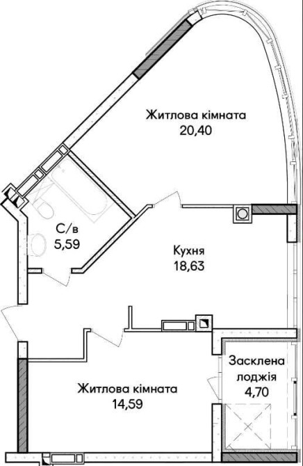 Простора 2-кімнатна — 63,91 м²