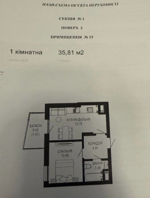1 - комн. 38,5 м. кв. Чешка, ж/м Тополь-3. Состояние жилое. Свободная. Днепр 11