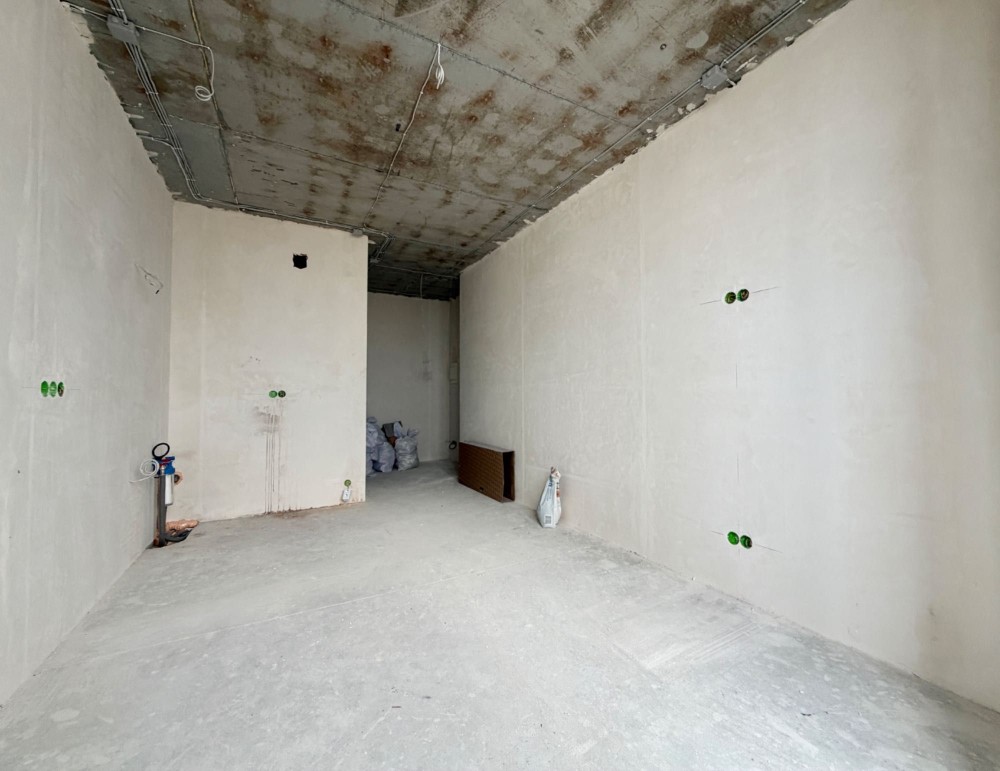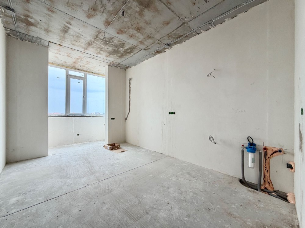В квартирі поштукатурені стіни, залита чистова стяжка, розведено електрику та сантехніку, встановлено інсталяцію