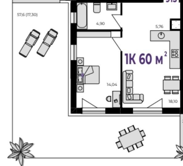 • Общая площадь 60 м2