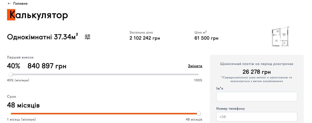 -розтемінування на 48 місяців, по 26 тис щомісяця, перший внесок 40% - 841 тис.